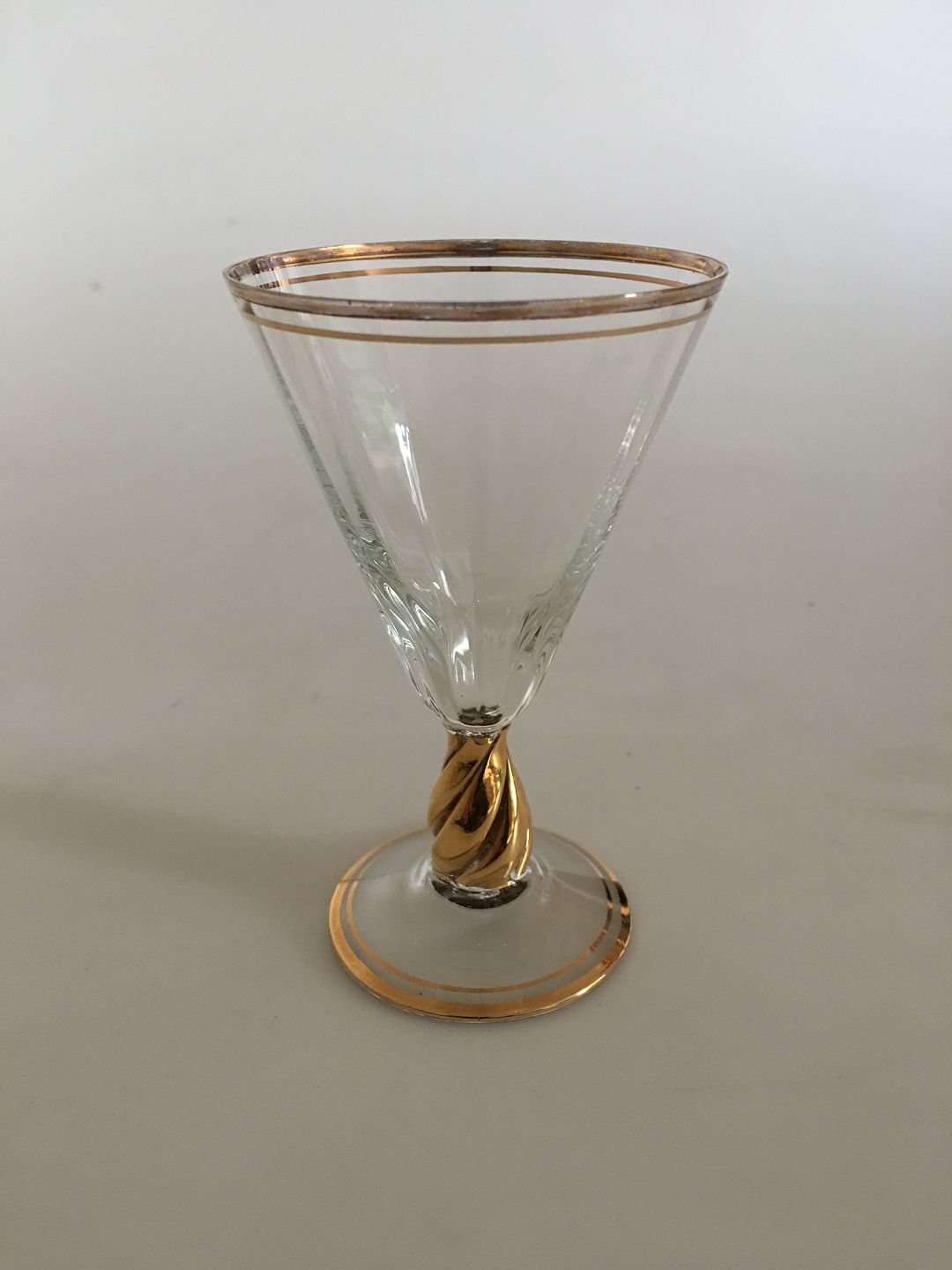 Holmegaard "Ida" Liqueur Glass with Gold on Stem, Rank and Foot. Measures 10.4 cm / 4 3/32 in. H. x 6.5 cm / 2 9/16 in. dia.