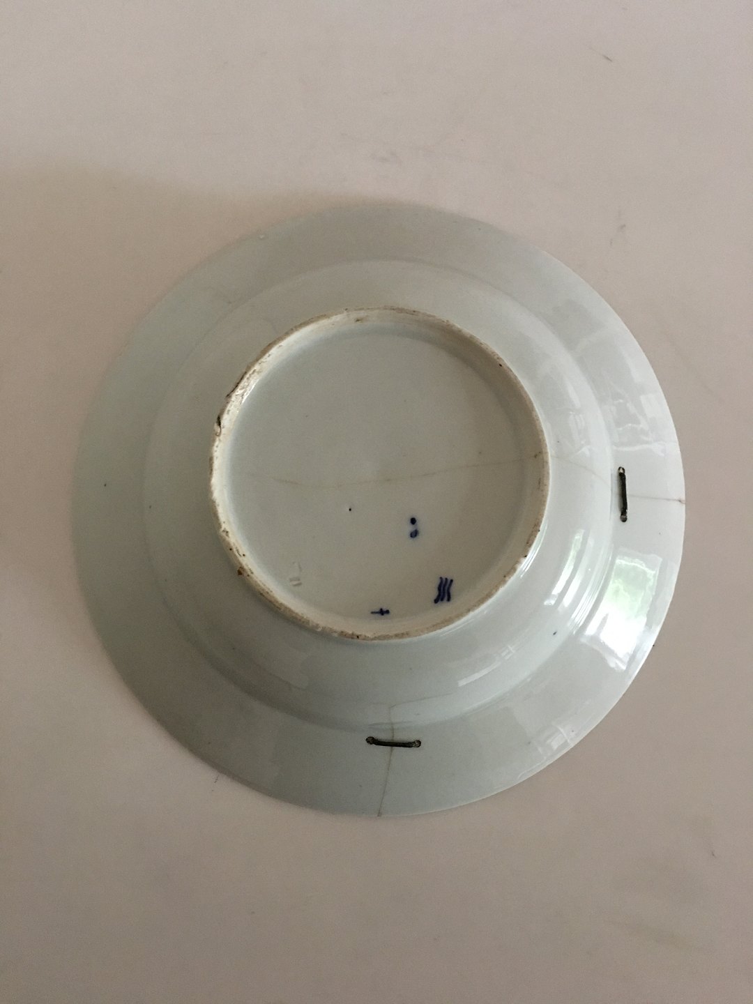 Royal Copenhagen Antique Blue Fluted Plain Deep Plate. Measures 23.5 cm dia. / 9 1/4 in. The plate is mended with staples a few places.