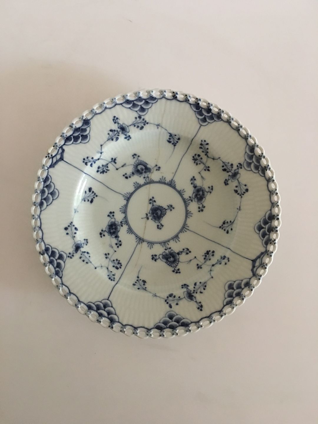 Royal Copenhagen Antique Blue Fluted Full Lace Plate. Measures 23.5 cm dia. / 9 1/4 in. It is mended across the middle.