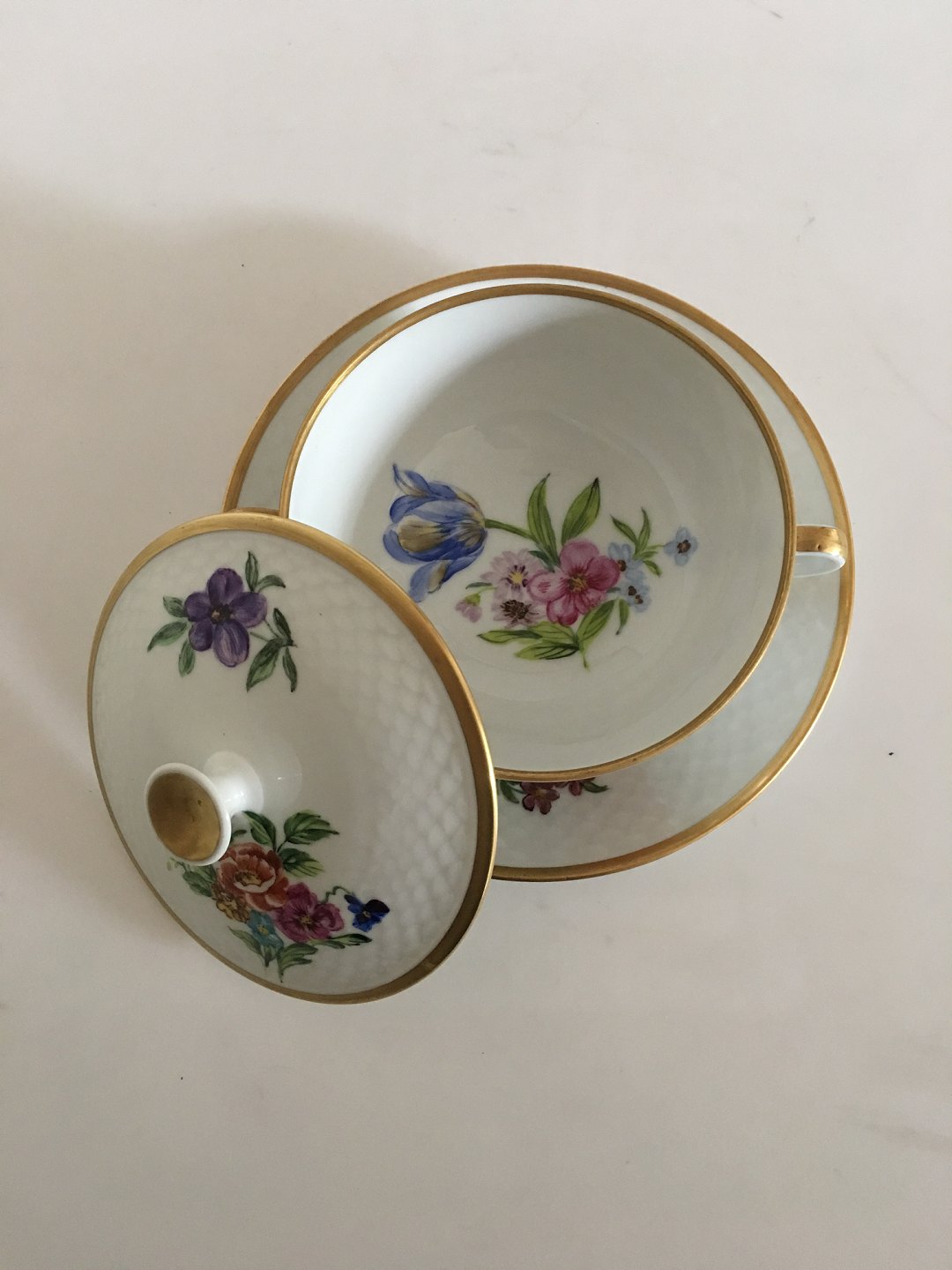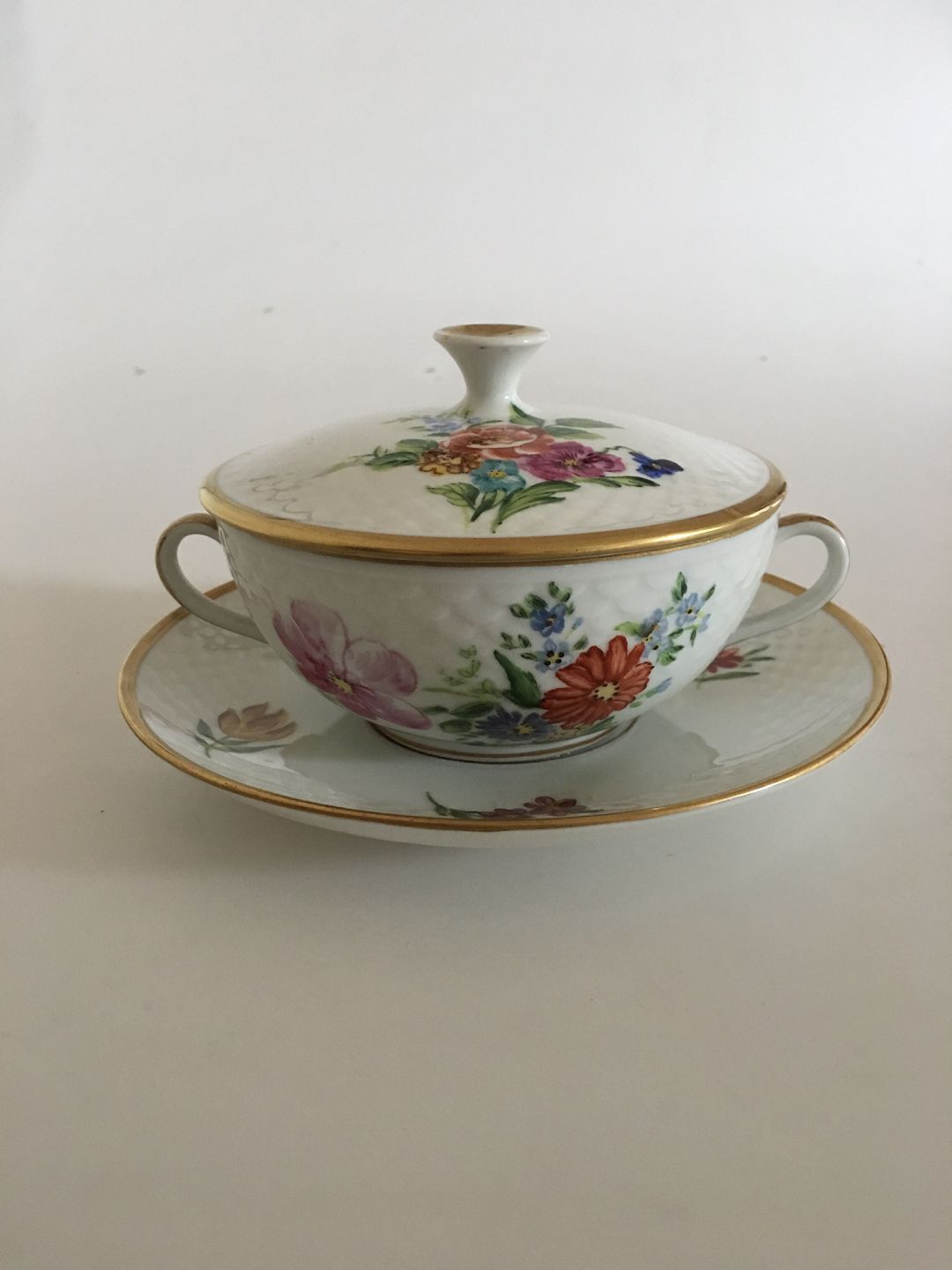 Bing & Grondahl Saxon Flower Handpainted Bouillon Cup with Saucer No 247. Cup measures 12 cm dia.