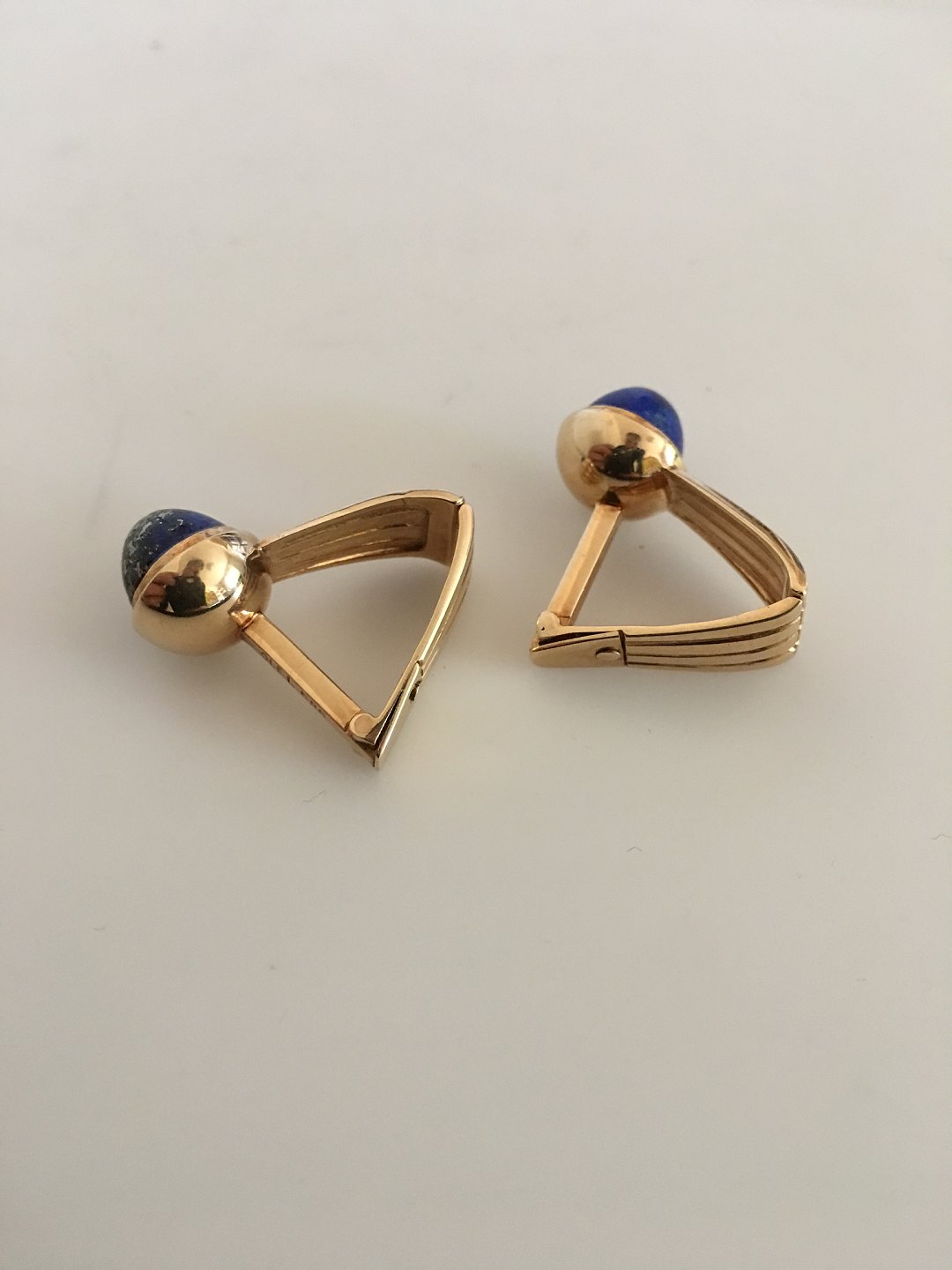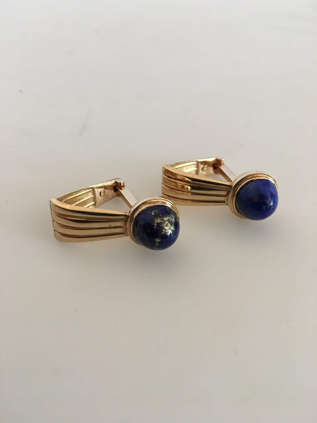 Ole Lynggaard 14K Gold Cufflinks with Lapis Stones. Measures 2.5 cm diameter (0 63/64"). Combined weight of 11 grams