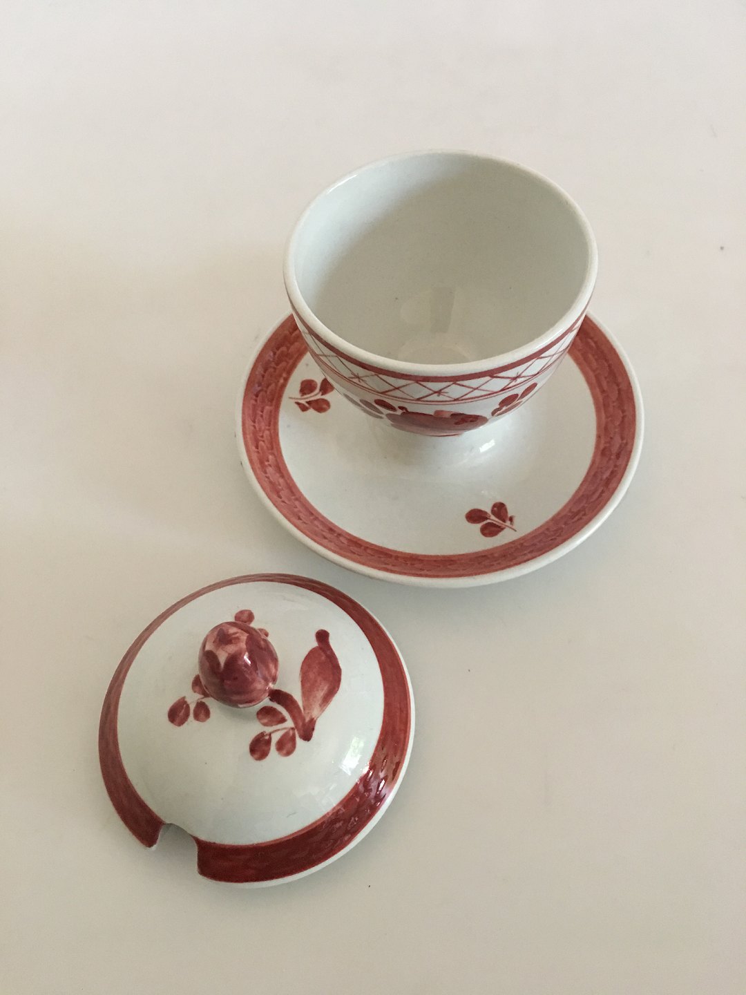 Royal Copenhagen Red Tranquebar Jam Bowl No. 1010. Measures 11.5 cm H. 6.5 cm diameter. In nice condition.