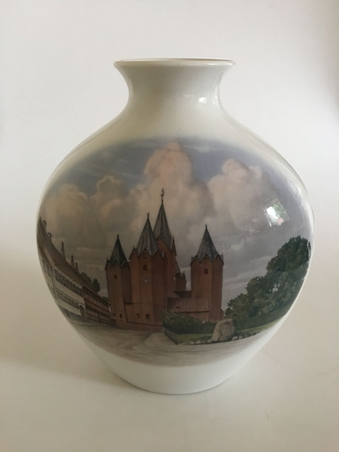Bing and Grondahl Unique Vase No. 507 by Sophus Jensen. Motif: Church of Our Lady in Kalundborg. Measures 30 cm x 25 cm / 11.81 in. x 9.84 in. In fine condition.