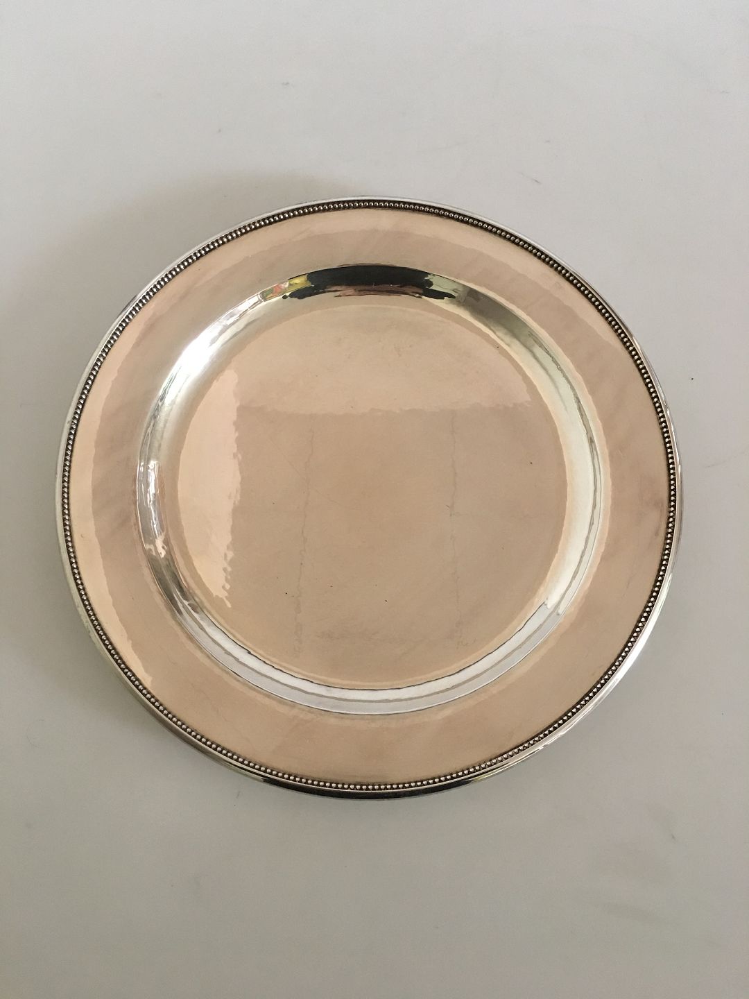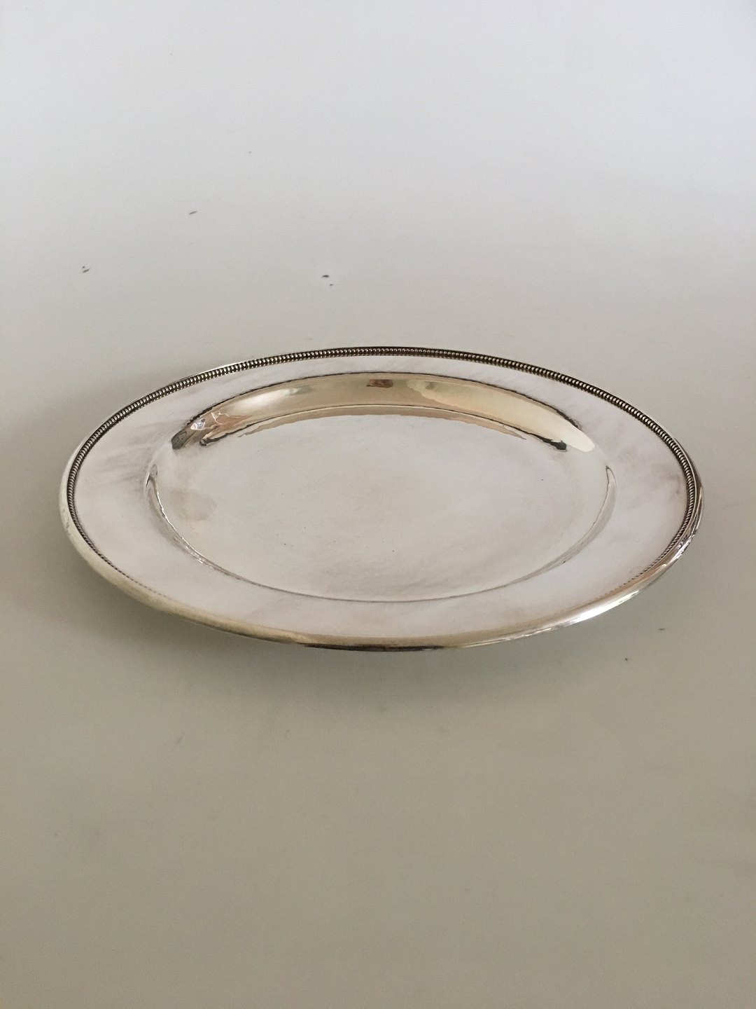 Georg Jensen Sterling Silver Plate / Tray No. 210 N. Measures 28 cm diameter (11 1/32"). Weighs 650 grams. Manufactured after 1945.