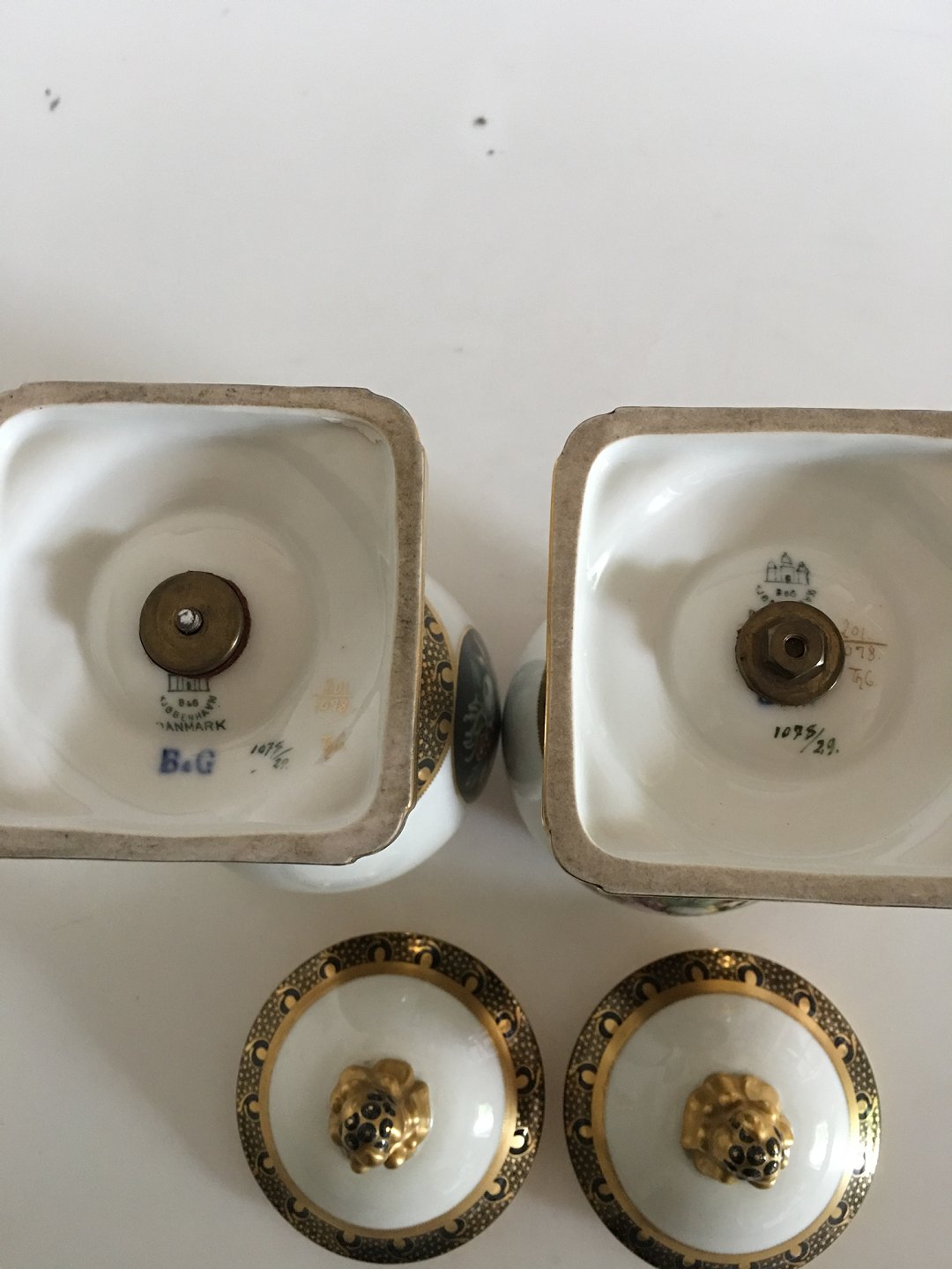 Bing & Grondahl Pair of Overglaze vase with Gold decoration by Theodor Larsen