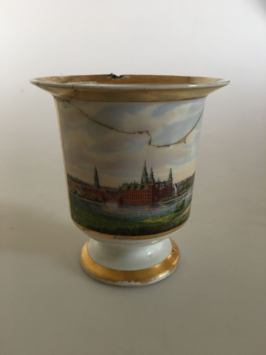 Royal Copenhagen Empire Lion Cup with motif of Frederiksborg Castle frfom 1820-1850.