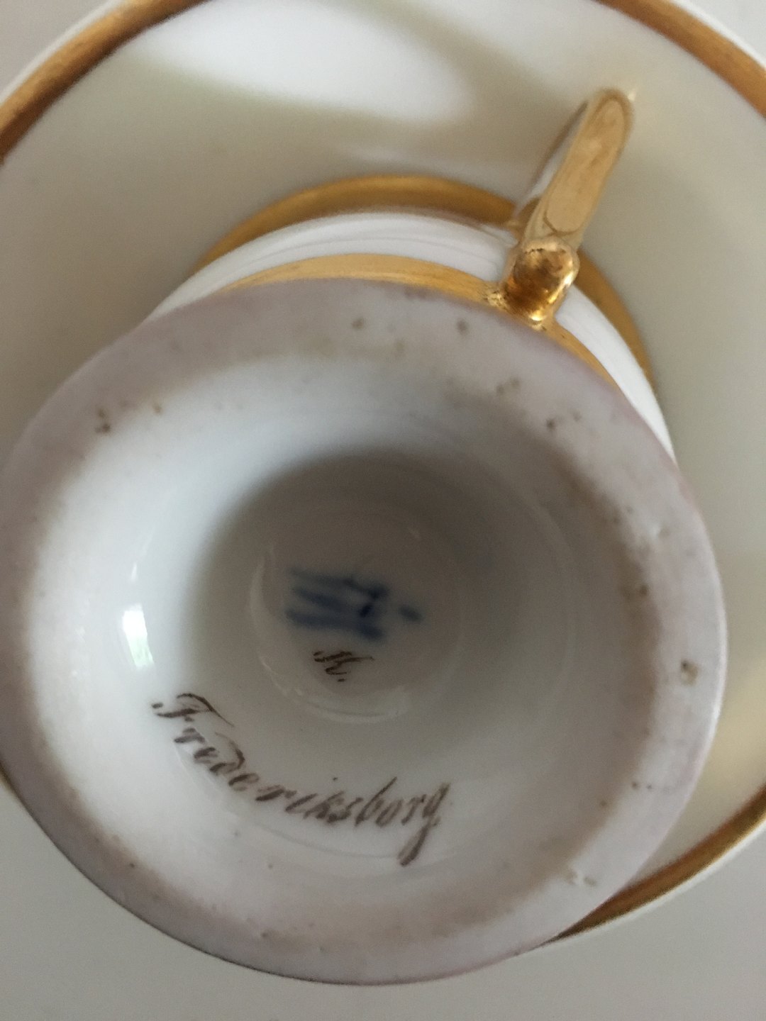 Royal Copenhagen Empire Cup with motif of Frederiksberg Castle by Christian Klein from 1820-1850.