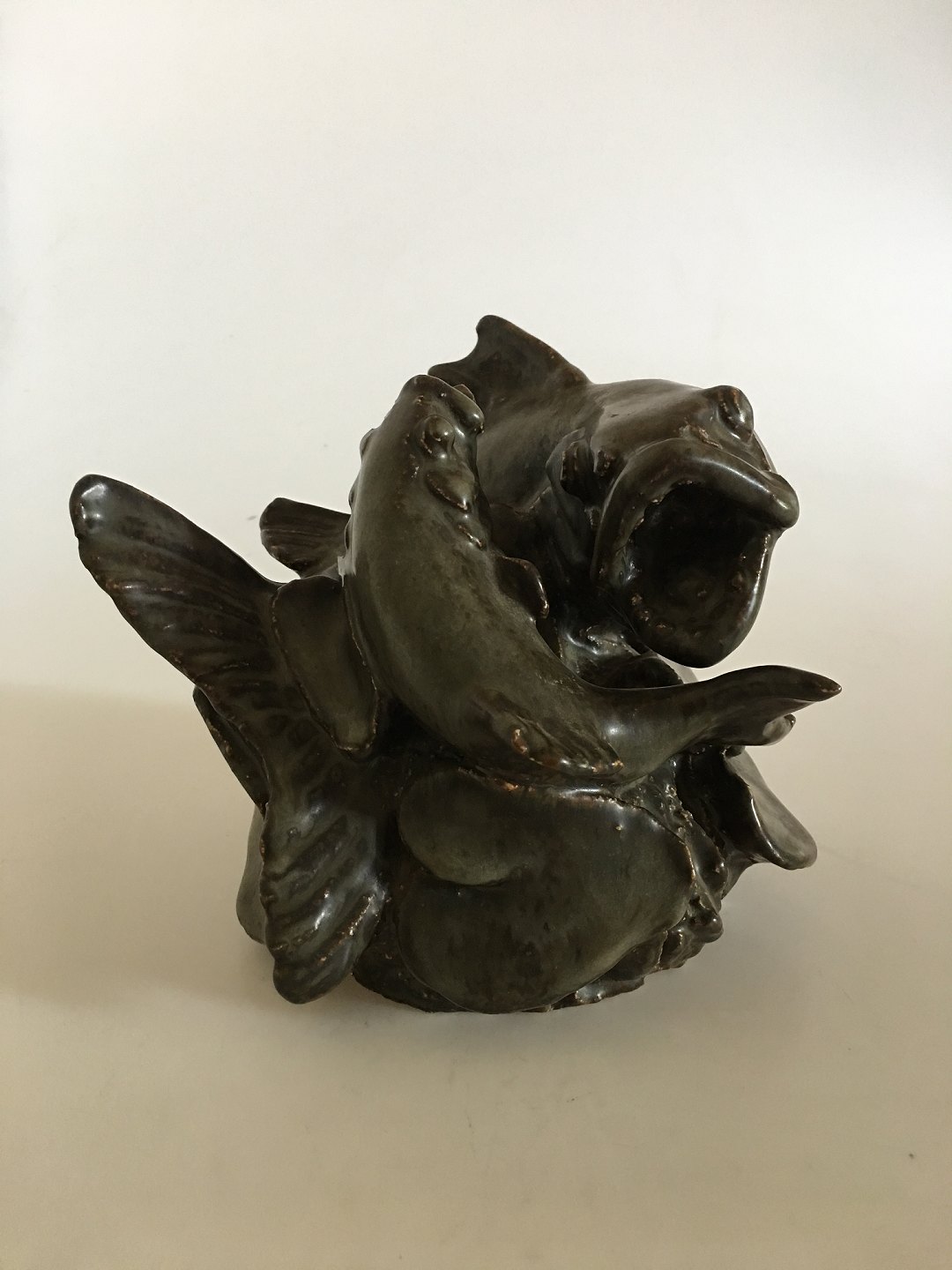 Saxbo Stoneware figurine with motif of Fish. Designed and signed by Hugo Liisberg.