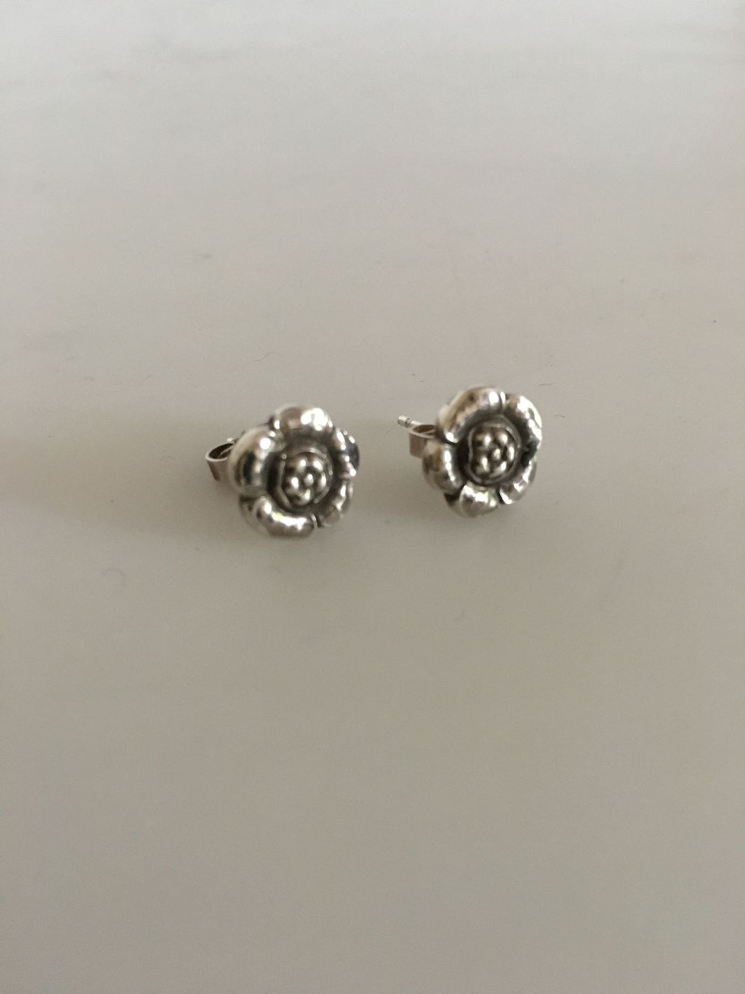 Georg Jensen Sterling Silver Flower Earsticks No. 21. Measures 0.8 cm diameter and weighs under 5 grams. Manufactured after 1945.