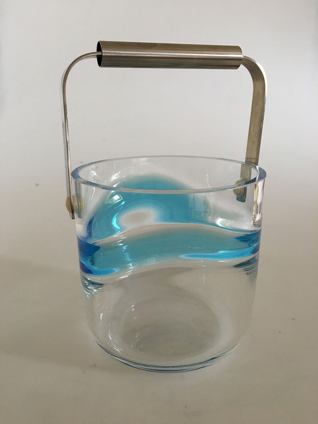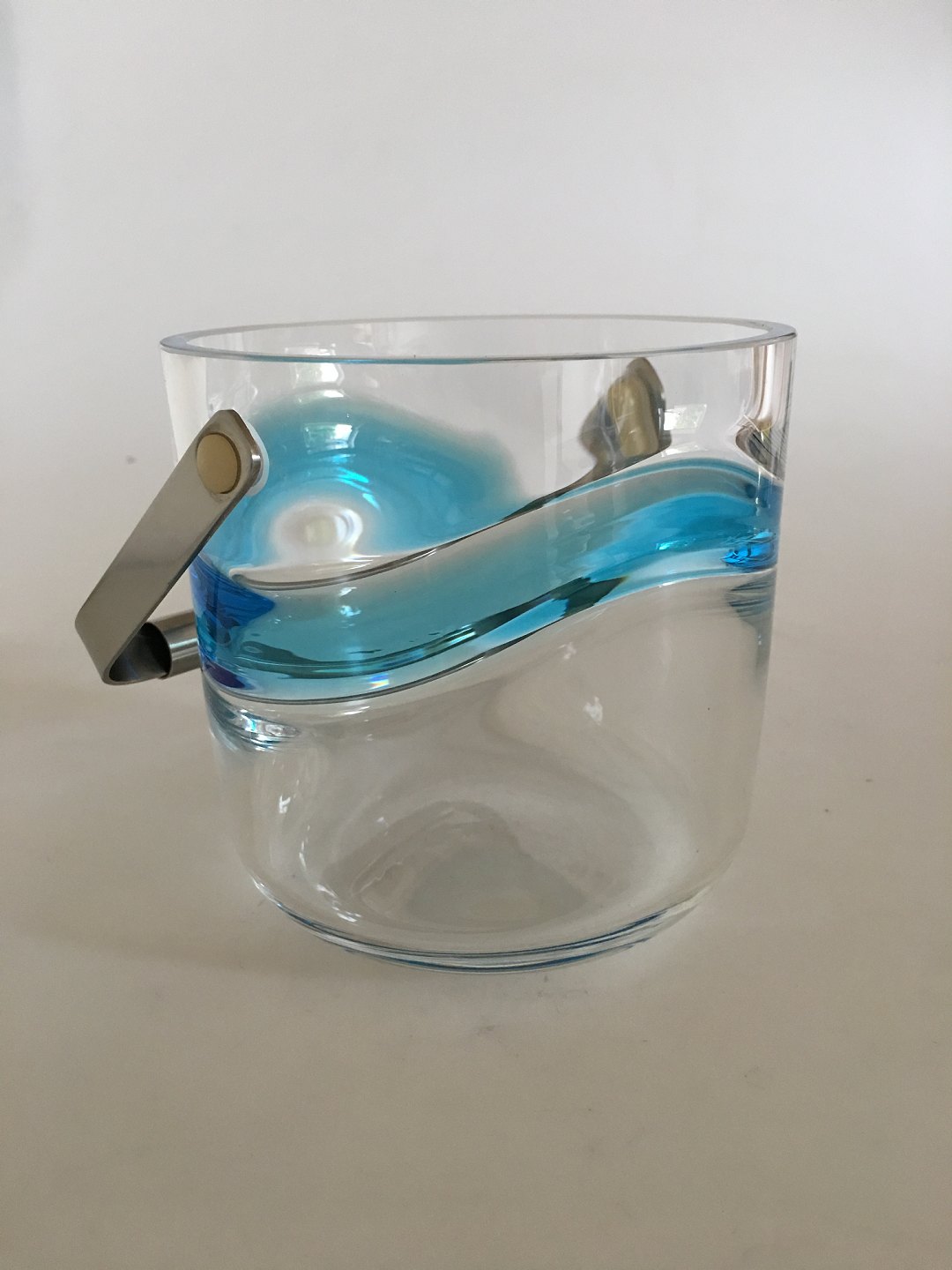 Blue Hour Ice Bucket in glass from Holmegaard. 13 cm diameter. 13 cm high. Designed by Christer and Christel Holmgren 1971.