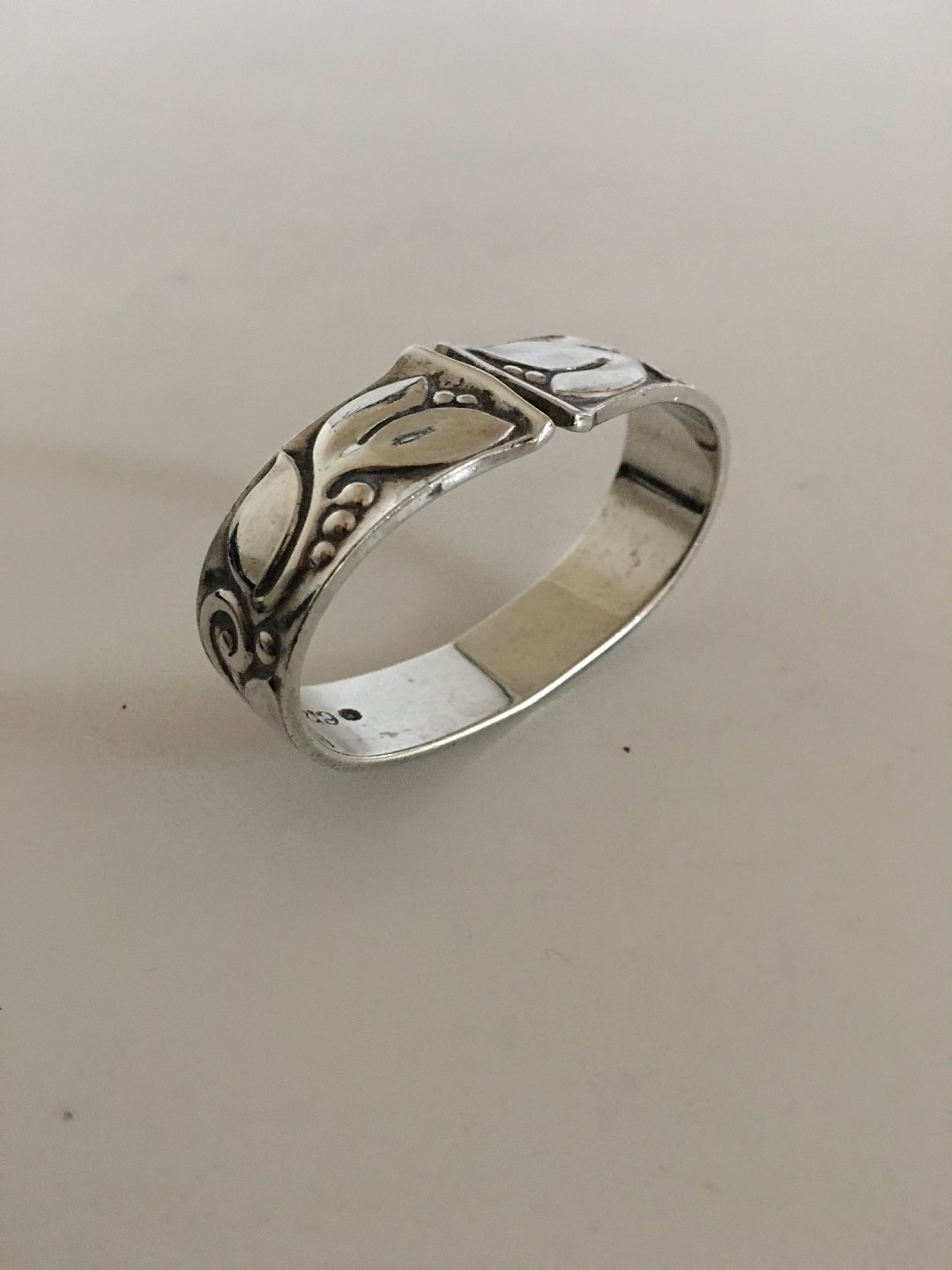 Evald Nielsen flower decorated silver napkin ring. Measures 5.2 x 3.2 cm. 1.3 cm thickness.