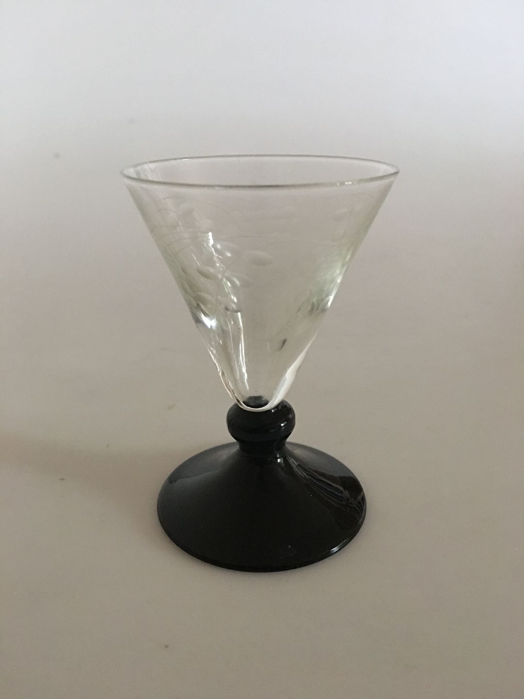 "Jane" Blackfooted Liqueur Glass with ingraved grapes. Holmegaard. 8.5 cm H. 5.5 cm diameter. Manufactured first in 1942.