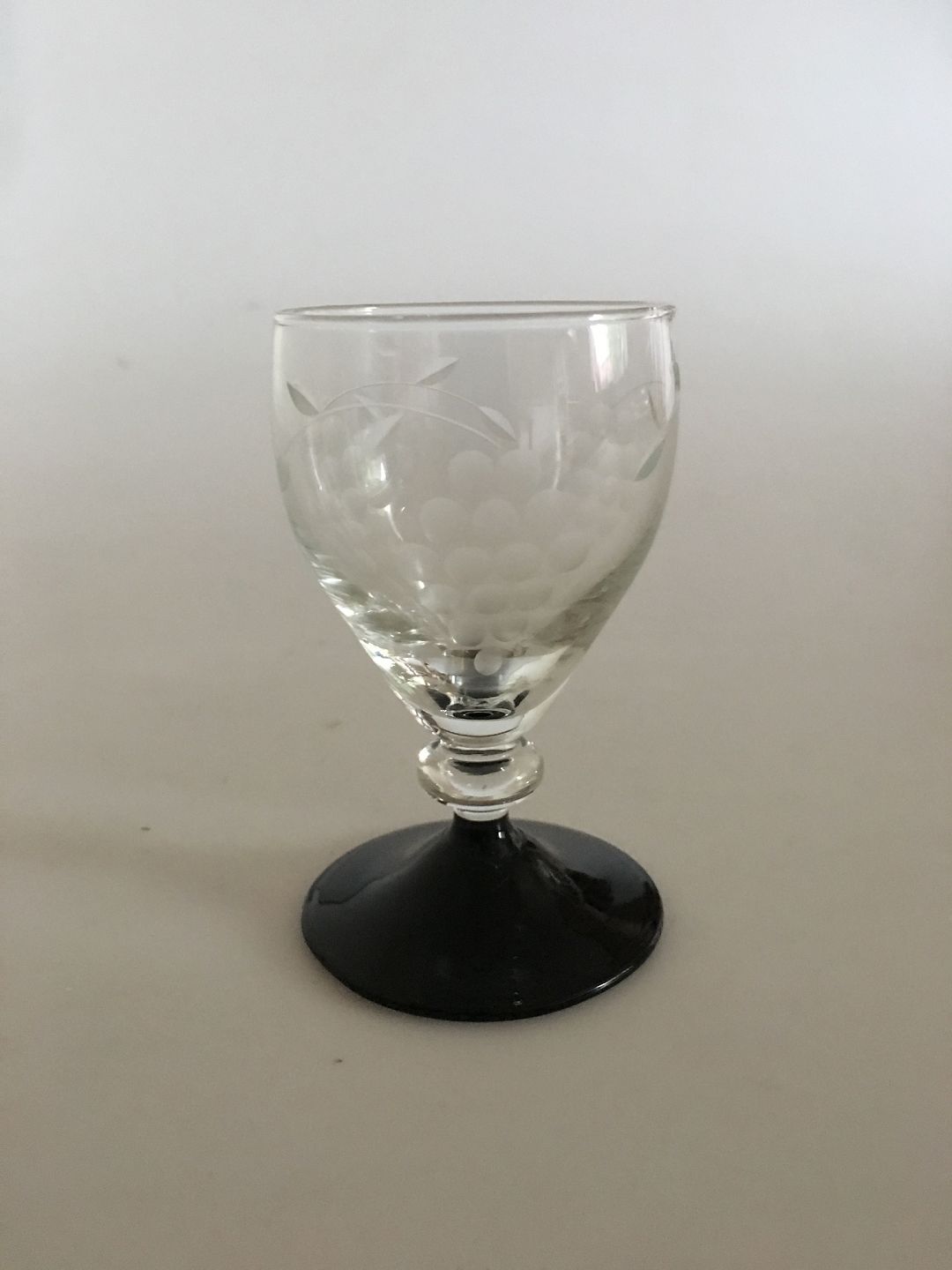 "Jane" Blackfooted Porter Glass with ingraved grapes. Holmegaard. 8 cm H. Manufactured first in 1942.