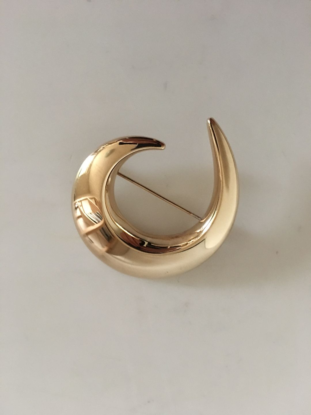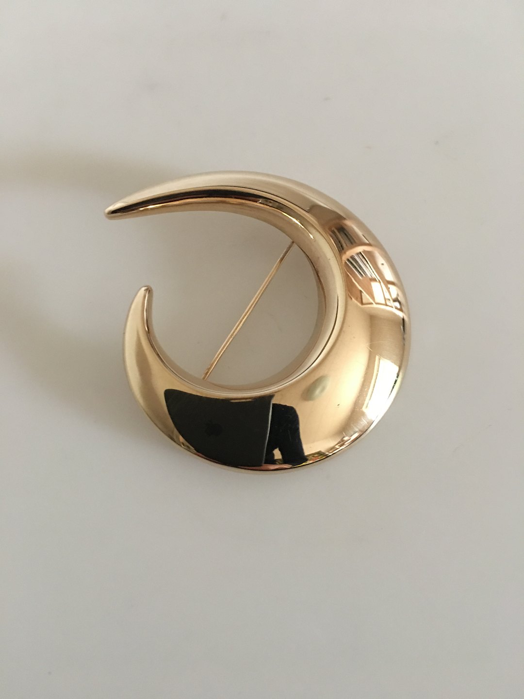 Hans Hansen 14K Gold Brooch No 105. Measures 4 cm x 4.6 cm / 1 37/64 in. x 1 13/16 in. Weighs 15 g / 0.55 oz. In fine condition.