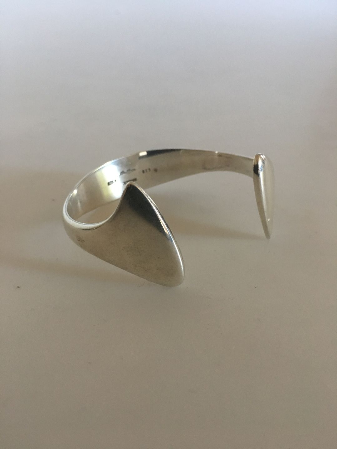 Hans Hansen Sterling Silver Bracelet No 213. Measures 6 cm / 2 23/64" Opening measures 3 cm / 1 3/16". Weighs 43 g / 1.50 oz.