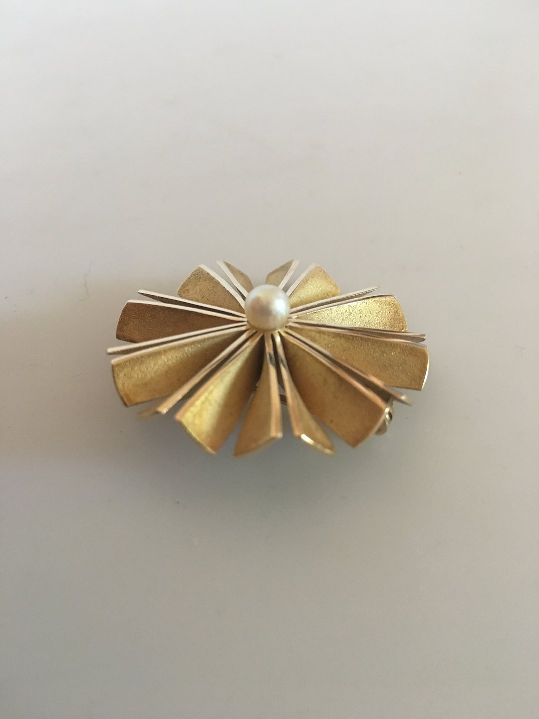 Hans Hansen 14K Round Gold Brooch with Pearl