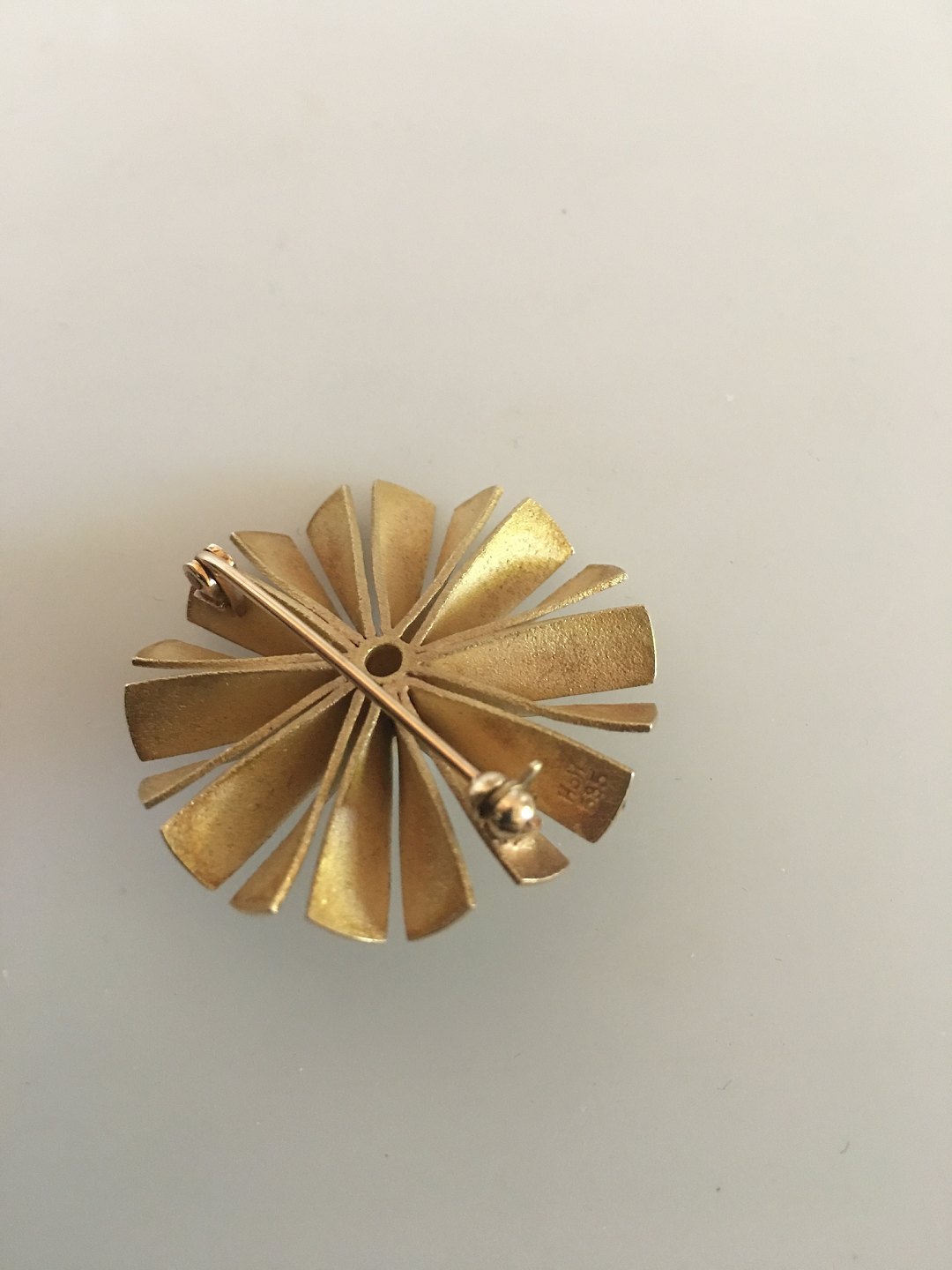 Hans Hansen 14K Round Gold Brooch with Pearl. Measures 3.3 cm diameter (1 19/64"). Weighs 13 grams (0.45 oz).
