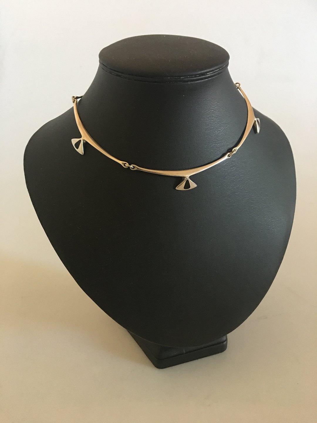 Hans Hansen Sterling Silver Necklace No. 317E Ornamented with Black Onyx
