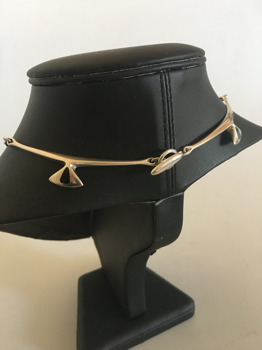 Hans Hansen Sterling Silver Necklace No. 317E Ornamented with Black Onyx. Measures 36.5 cm x 1.4 cm / 14 3/8 in. x 0 35/64 in. Weighs 34 g / 1.20 oz.