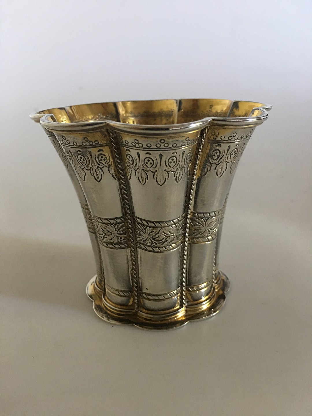 Anton Michelsen Sterling Silver Margrethe Cup Gilded on the inside. Measures 8.3 cm H. 9.2 cm diameter. Weighs 142 grams. The cup have original been gilded on the outside too, but most of this have been polished off.