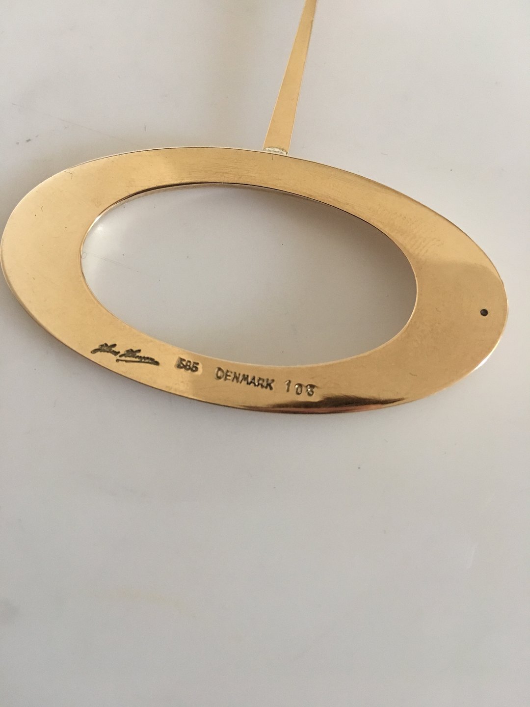 Hans Hansen 14K Gold Pendant No 103 in 14K Gold Chain (Not by Hans Hansen). Diameter of the neckring measures 12 cm / 4 23/32 in. Oval diameter of the pendant measures 5.5 cm / 2 11/64 in. Weighs 25 / 0.90 oz.
