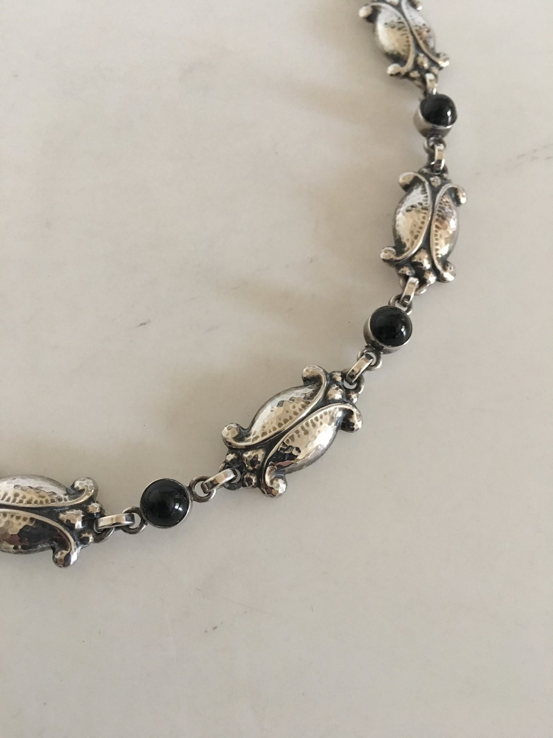 Georg Jensen Sterling Silver Necklace No 15 with Black Onyx. Measures 42 cm / 16 17/32 in. Weighs 40.9 g / 1.44 oz. Manufactured after 1945.