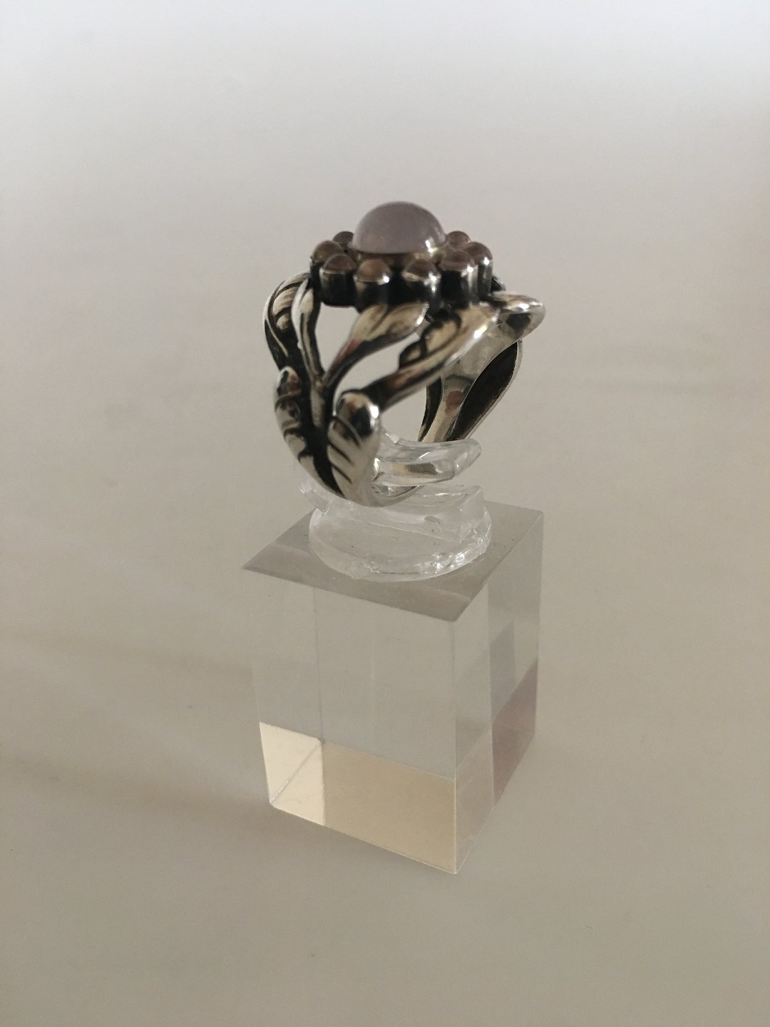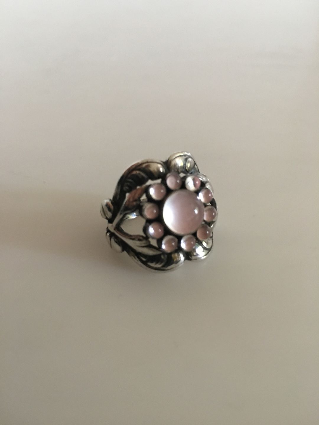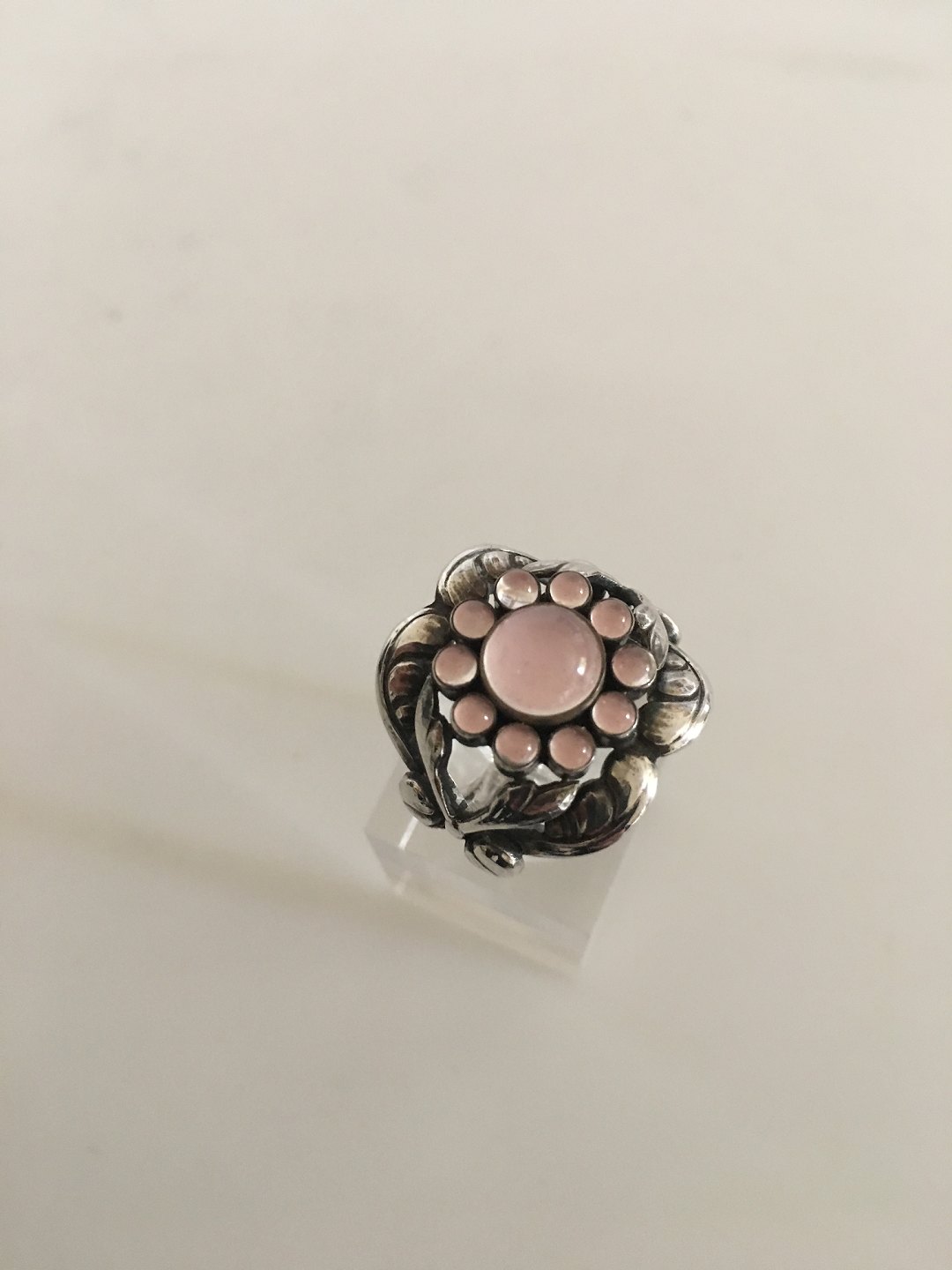 Georg Jensen Sterling Silver Ring No 10 with Rose Quartz. Ring Size 50 / US 5. Weighs 7.4 g / 0.26 oz. Manufactured after 1945.