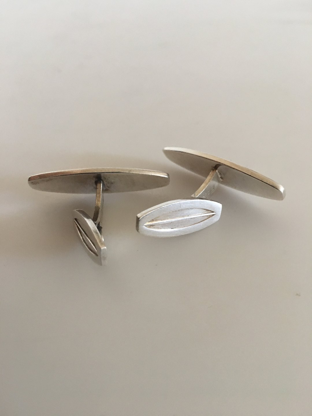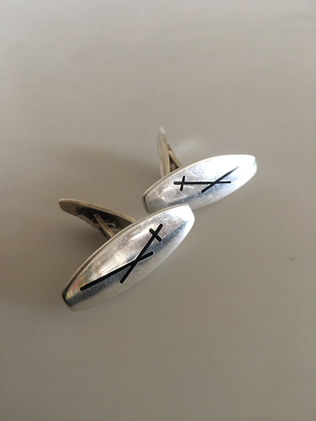Hans Hansen Sterling Silver Cufflinks with Black Enamel Pattern. Measures 3.1 cm / 1 7/32 in. Combined weight of 16 g / 0.55 oz.