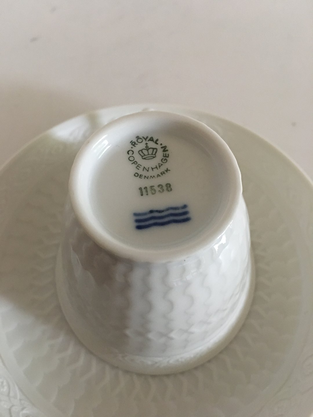 Royal Copenhagen White Fan Mocca Cup and Saucer No. 11538. 6.5 cm H.