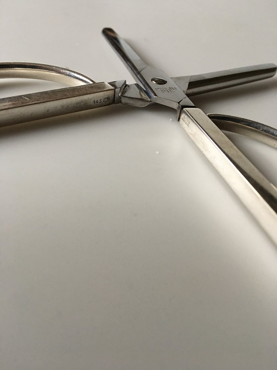 Georg Jensen Modern Sterling Silver and Steel Scissor No 143. Measures 13 cm / 5 1/8". Weighs 58 g / 2.05 oz.