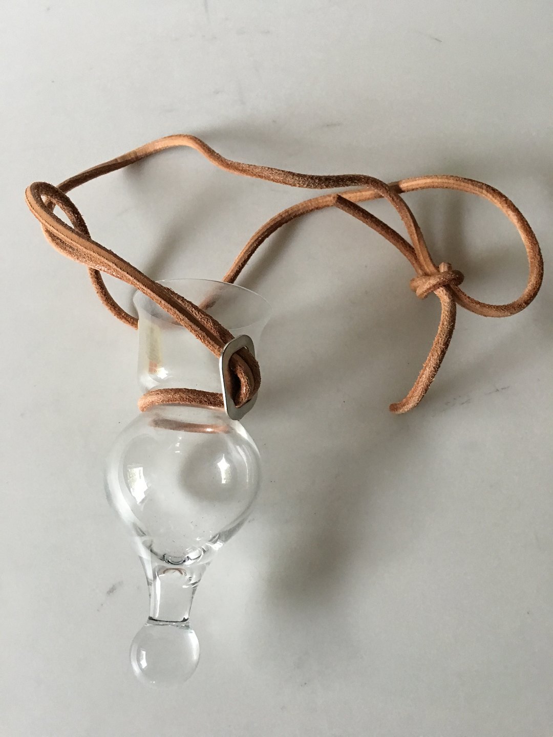 Holmegaard Small Neckglass in Leather Band. Design by Christer Holmgren. 11.5 cm L