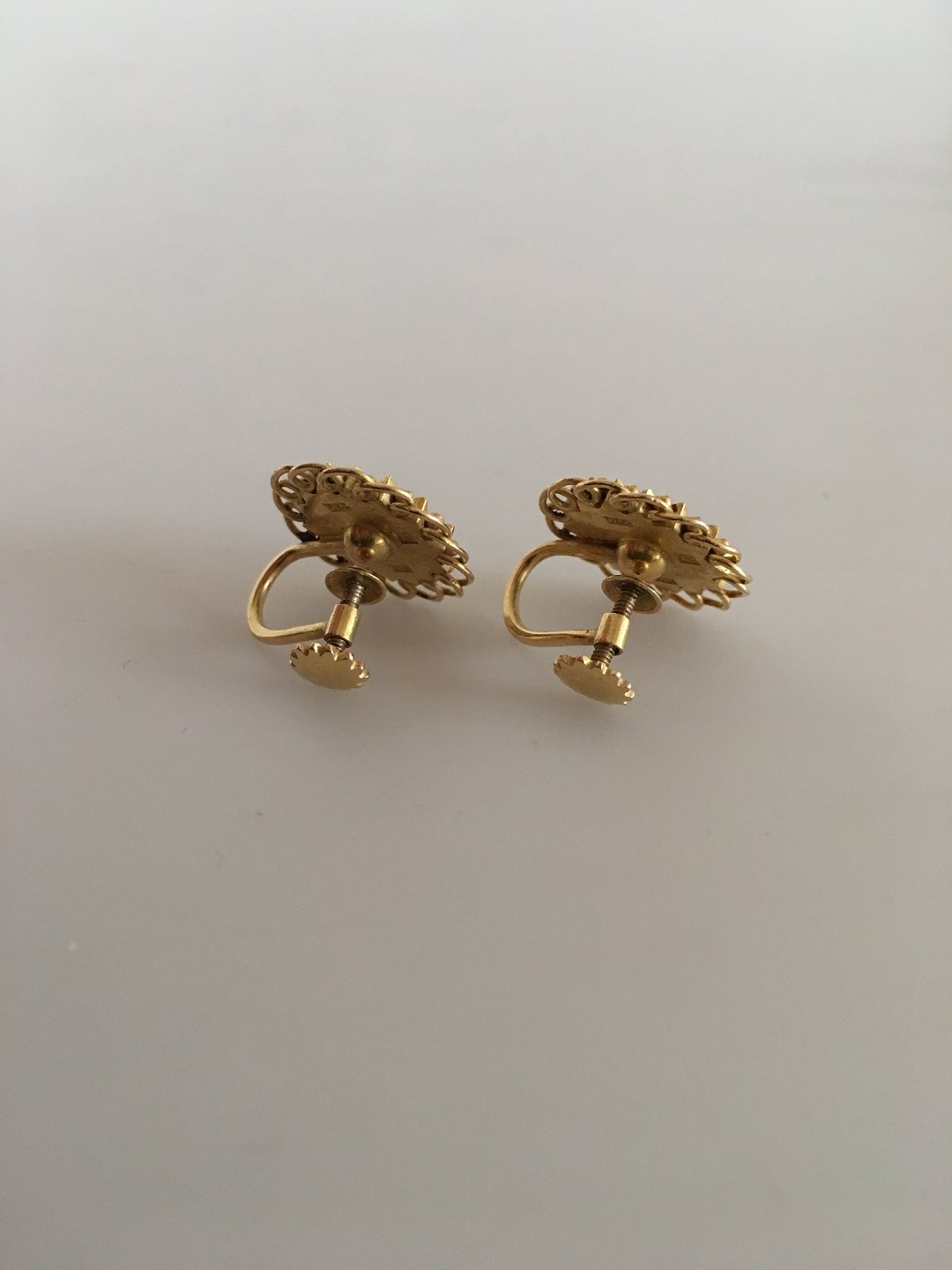 Georg Jensen 18K Gold Earrings (Screws) ornamented with a Pearl. Measures 1.5 cm / 0 19/32 in. diameter. Combined weight of 7 g / 0.25 oz.