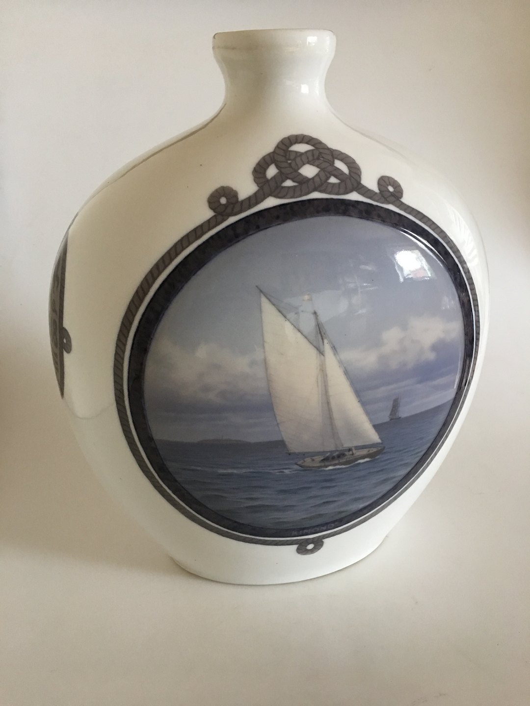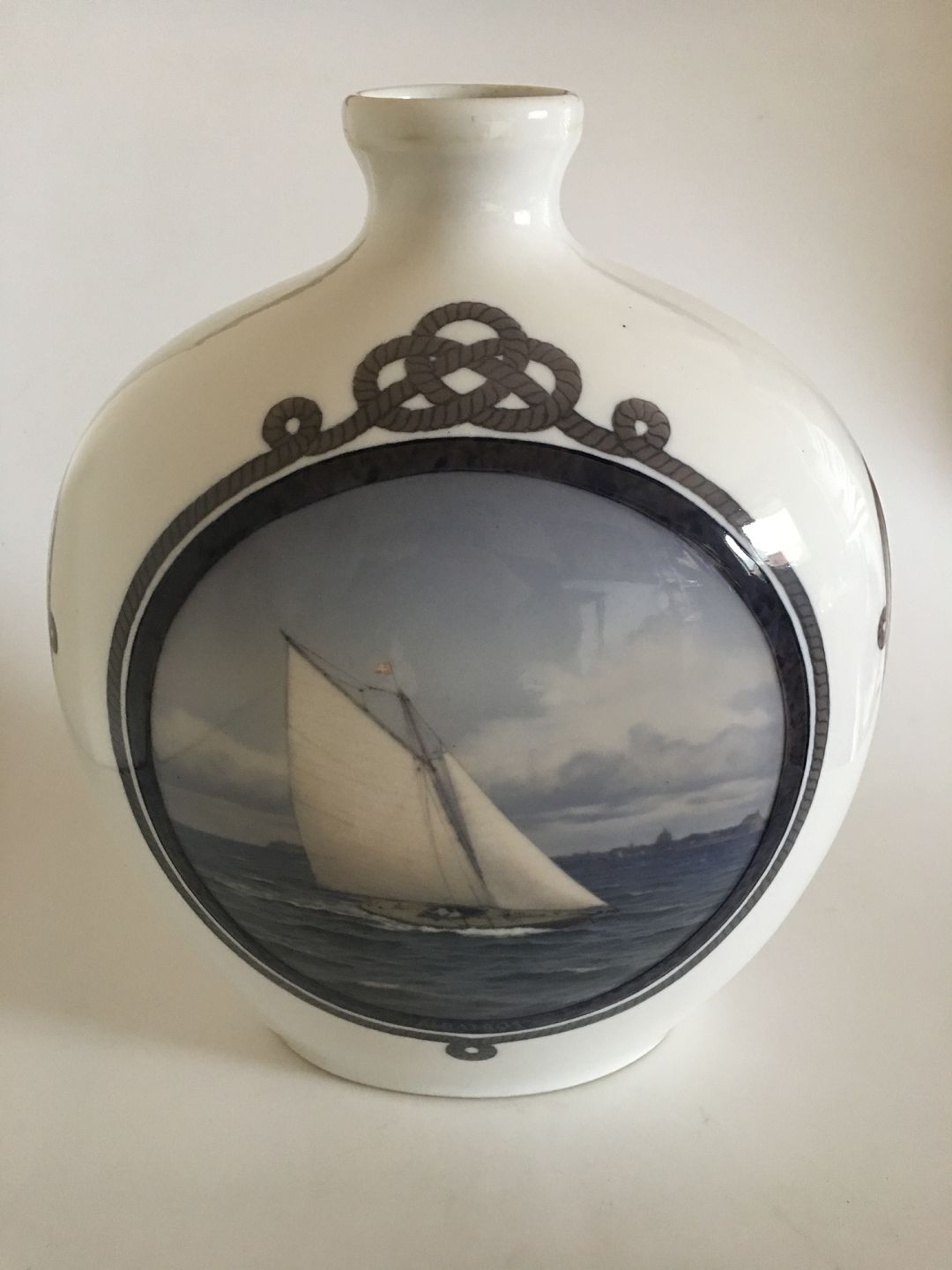 Royal Copenhagen Unique Vase decorated with Ships. By Christian Benjamin Olsen. 40 cm H. In good condition.