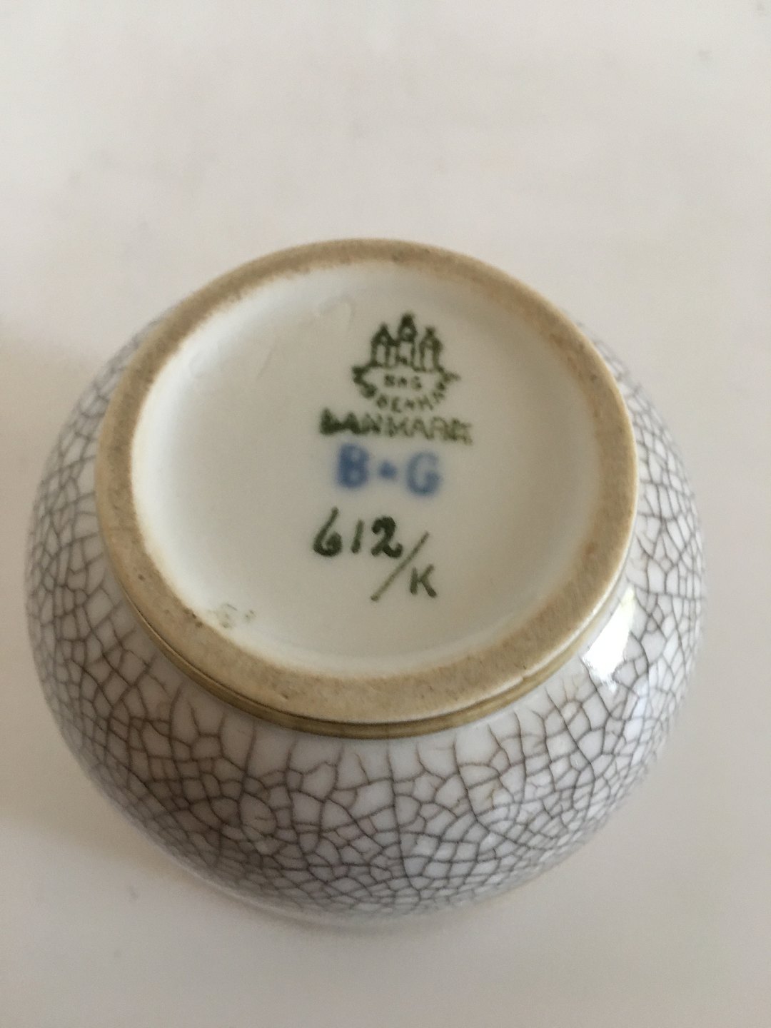 Bing & Grondahl Cracle vase with gold insignia No 612/K.