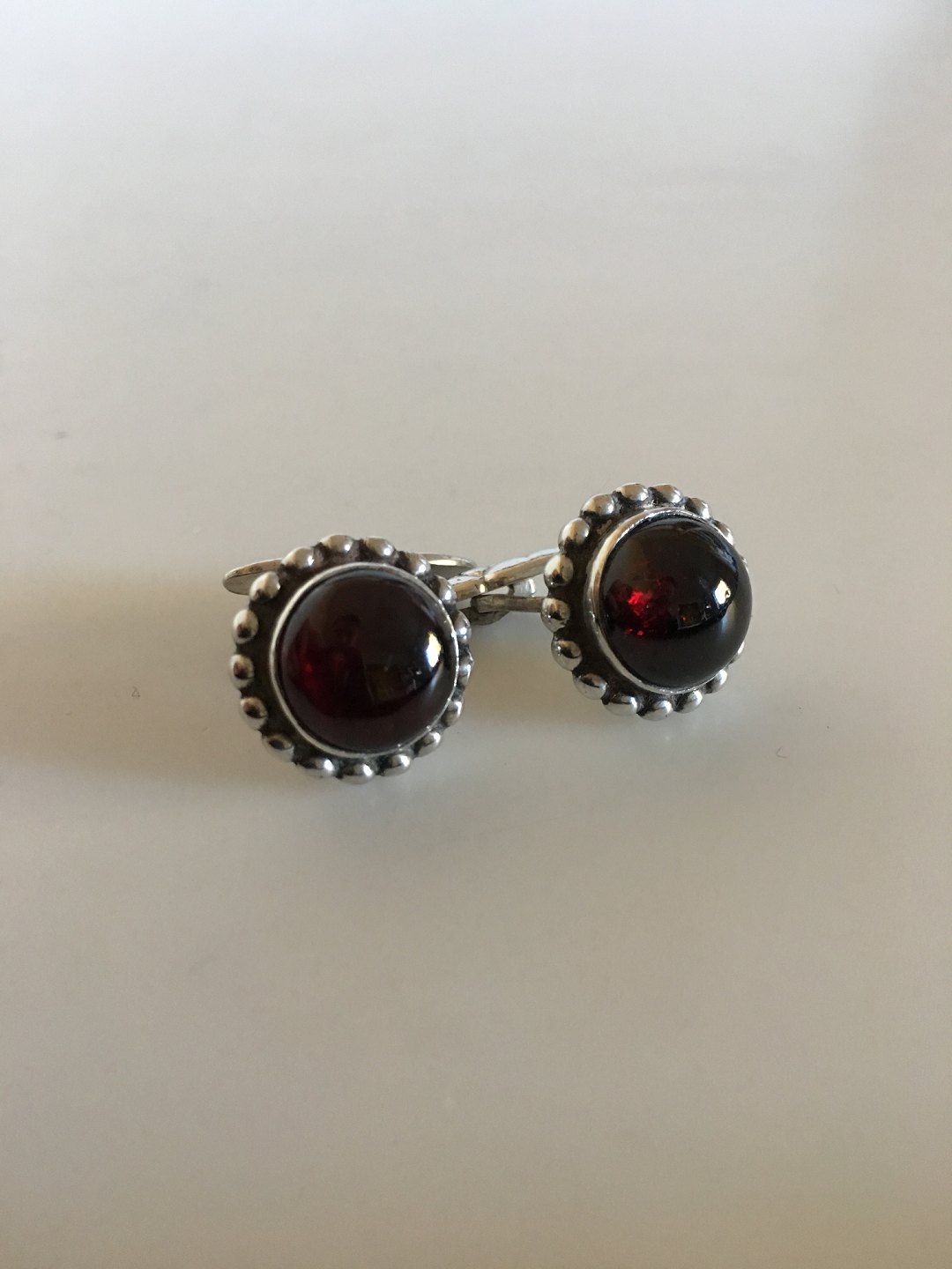Georg Jensen Sterling Silver Cufflinks No. 20 With Red Carnelians. Measures 1.5 cm diameter. Combined weight of 14 grams. From after 1945.
