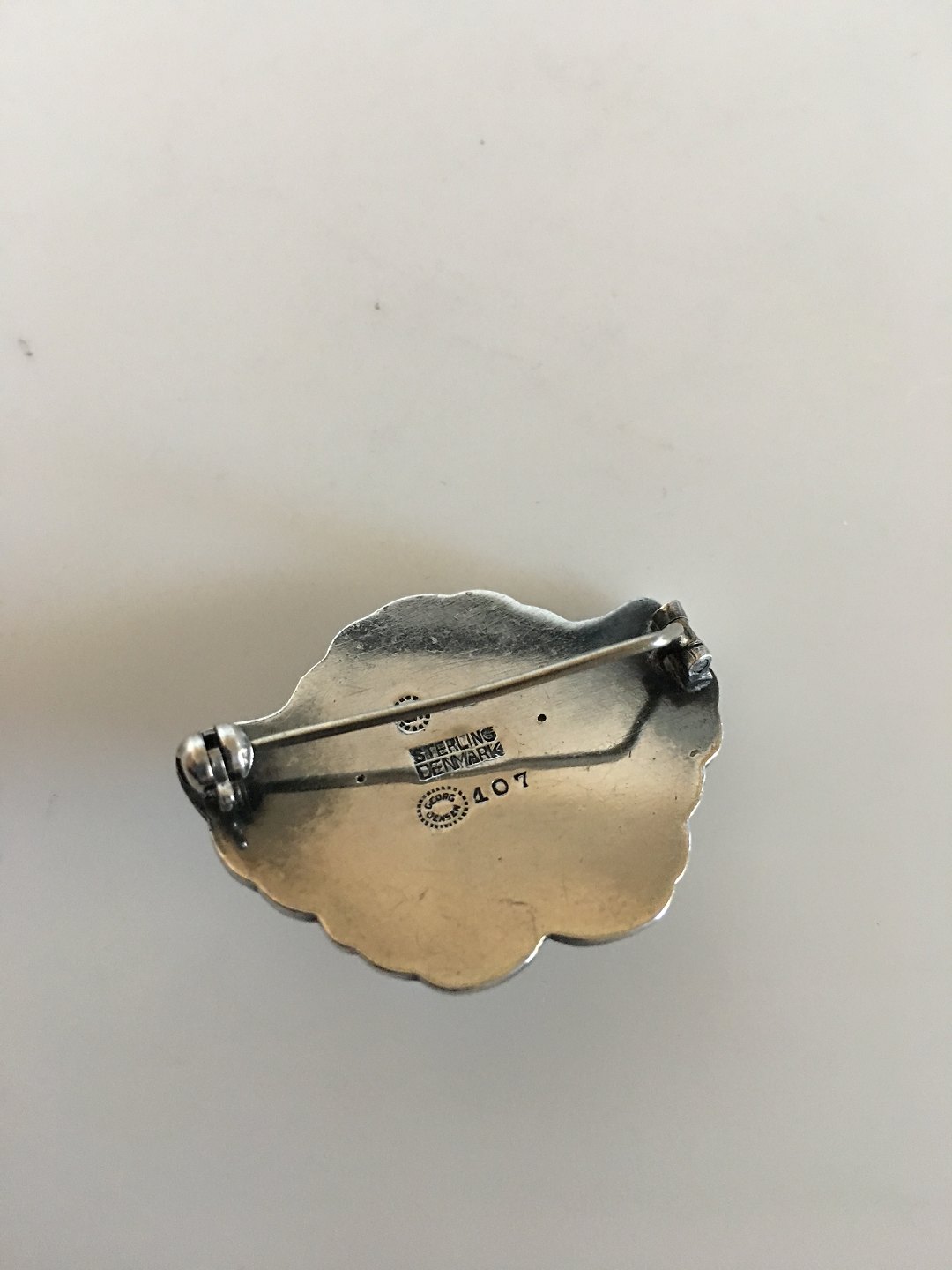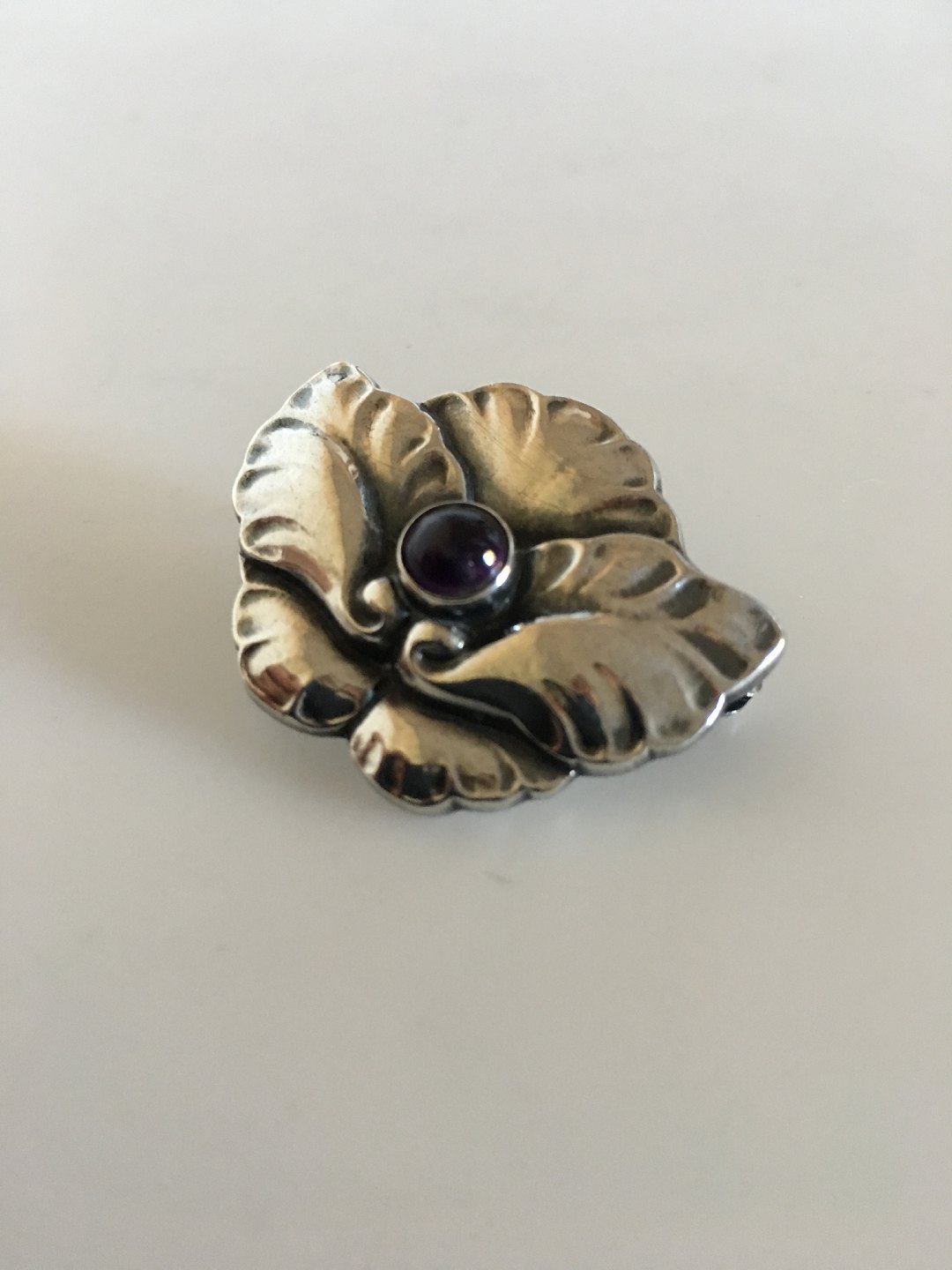 Georg Jensen Sterling Silver Brooch No 407 with Amethyst. Measures 3.5 cm / 1 3/8 in. Weighs 8 g / 0.28 oz. From after 1945.