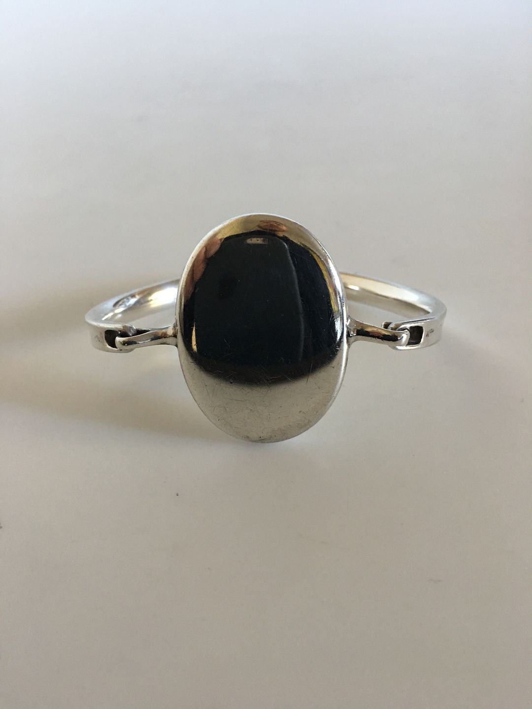 Georg Jensen Sterling Silver Modernist Torun Bracelet No 230. Measures 6 cm / 2 23/64" inner diameter. Oval silver plate measures 3.6 cm / 1 27/64". Weighs 37 g / 1.35 oz.