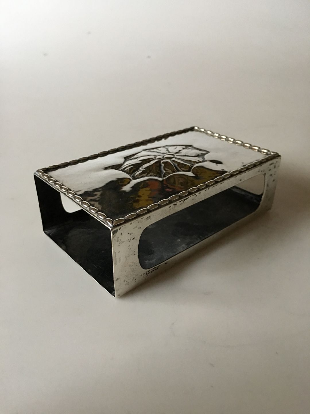 Georg Jensen Matchstick Box Cover No. 88 in 830 S. From 1919, Measures 12.3 x 7 cm. 3.6 cm H. Weighs 169 grams (5.95 oz).