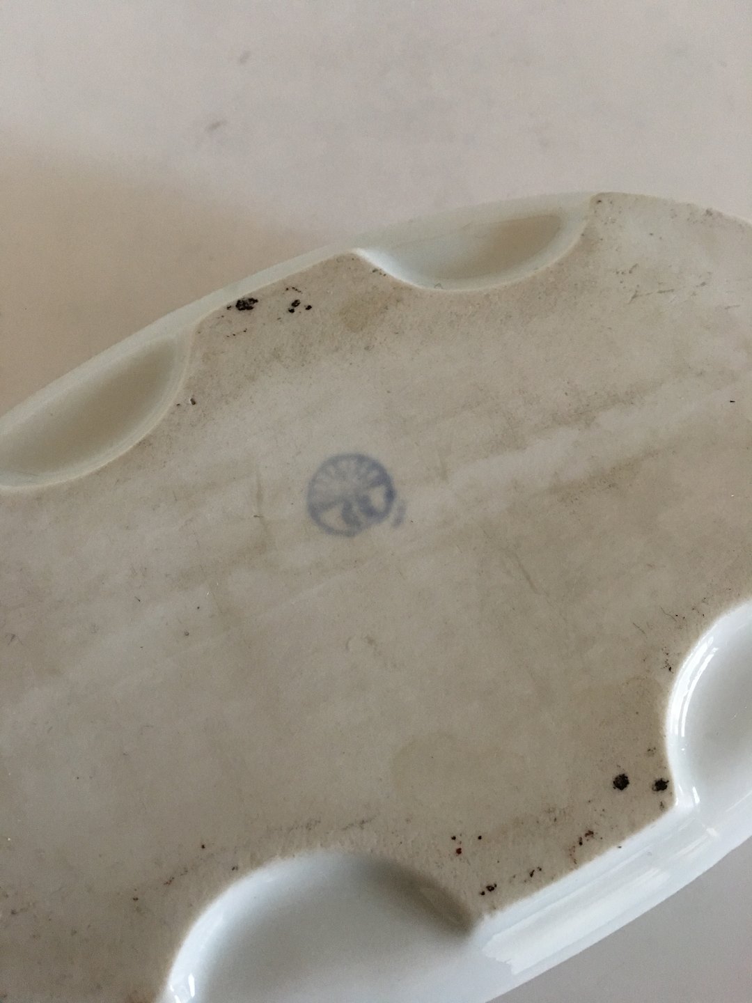 Heubach Art Nouveau Oval Shaped Flower Bassin Vase decorated with Roses. 22 cm L (8 21/32"). In nice condition.
