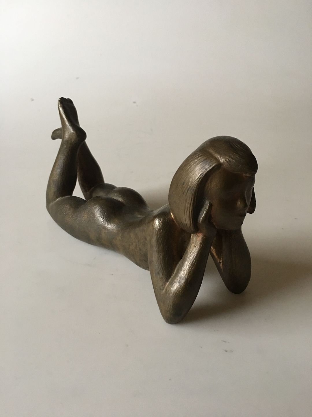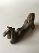 Johannes Hedegaard Bronze Figurine of Resting Naked Woman. 20 cm L (7 7/8"). In good condition.