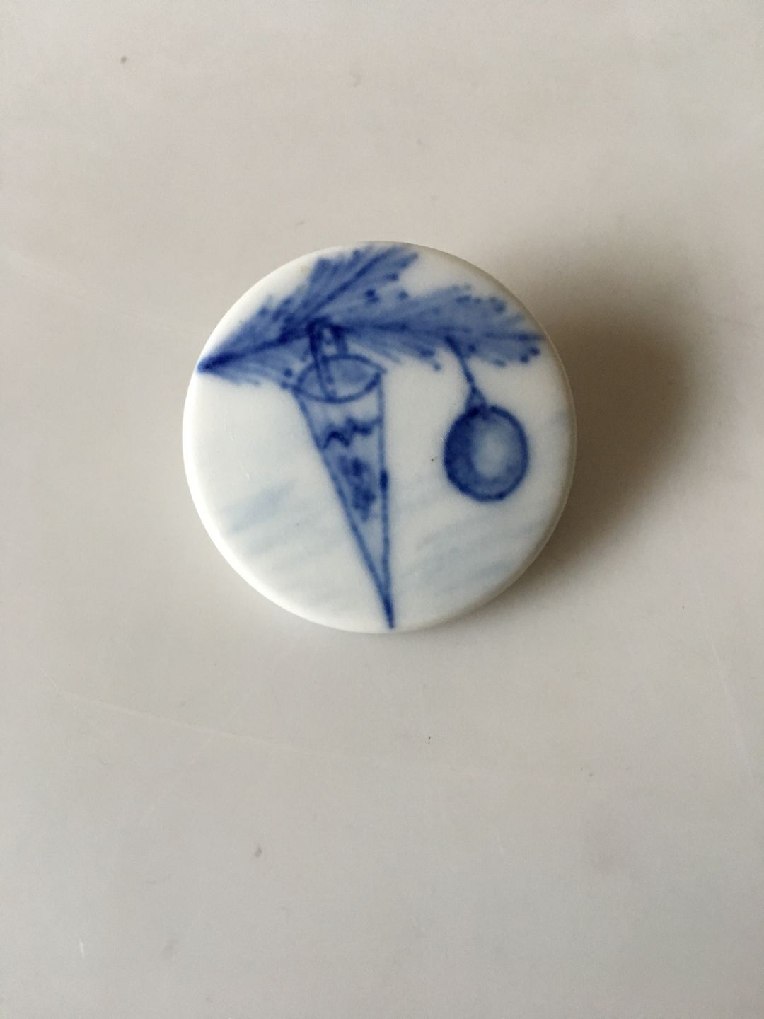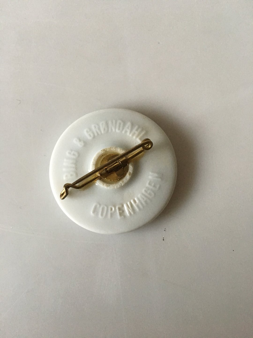 Bing & Grondahl Porcelain Brooch with Christmas Motif. Measures 3.2 cm diameter and is in great condition.