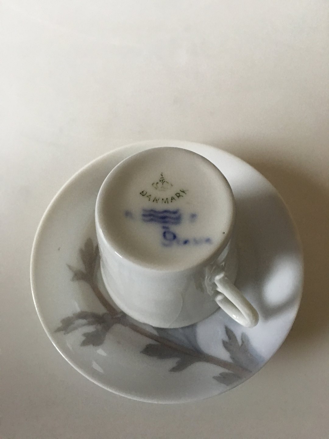 Royal Copenhagen Art Nouveau Mocha Cup and Saucer. The cup has to Hairlines and a chip. The saucer is in great condition. Cup measures 5.2 cm H. 5.8 cm dia.