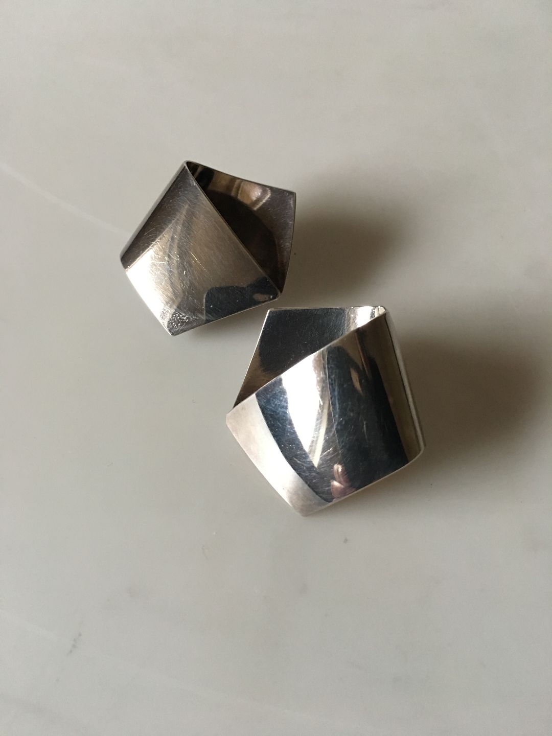 Georg Jensen Modern Sterling Silver Pentagon Shaped Earrings No 202. Measures 3 cm / 1 3/16 in. Combined weight of 15.1 g / 0.53 oz.