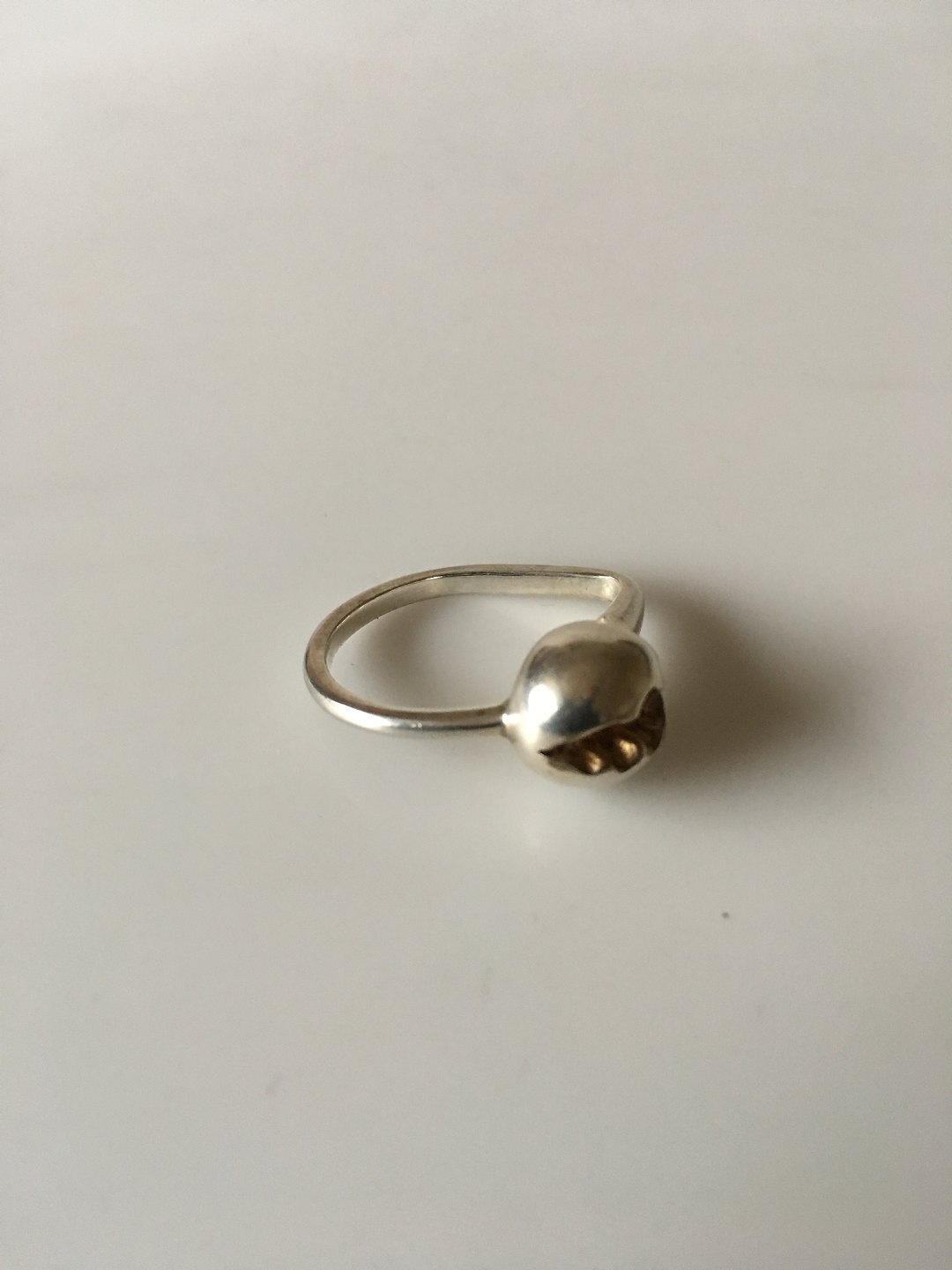 Georg Jensen Sterling Silver Modern Ring No 341 with Gilded Piece. Ring Size 53 / US 6 1/2. Weighs 6.2 g / 0.22 oz.