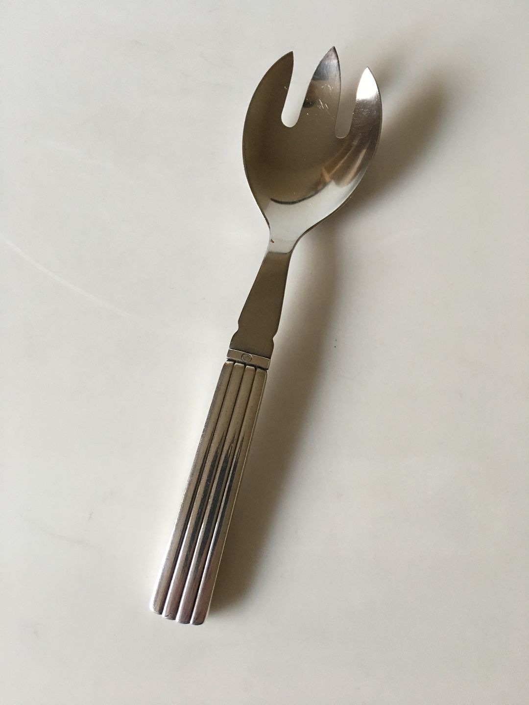Georg Jensen Bernadotte Salad Serving Fork in Sterling Silver and Stainless Steel No 110B. Measures 19.3 cm / 7 19/32 in.