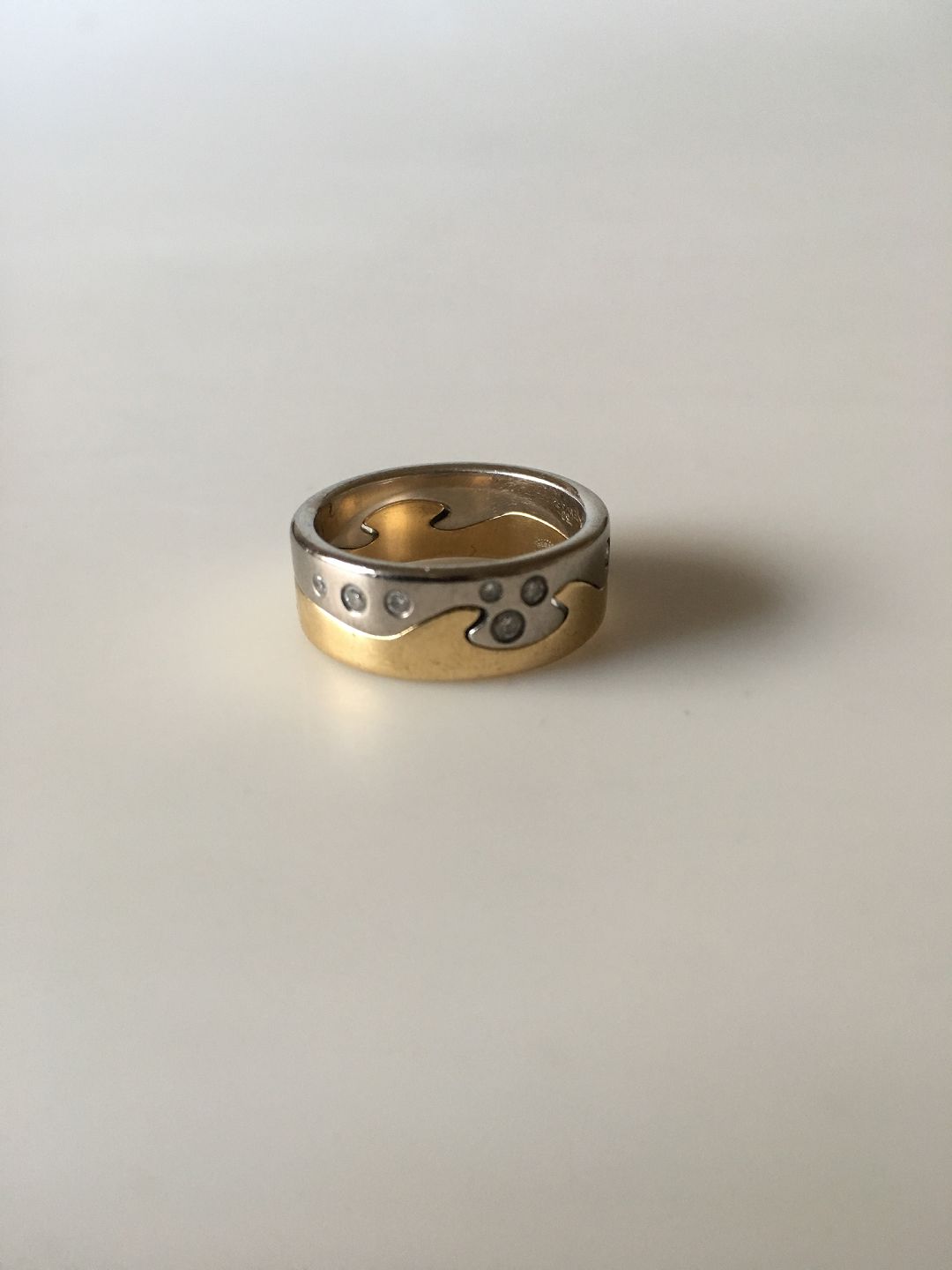 Georg Jensen 18K Gold and White Gold Fusion Ring with Diamonds designed by Nina Koppel. Ring Size 54 (Us Size 7).