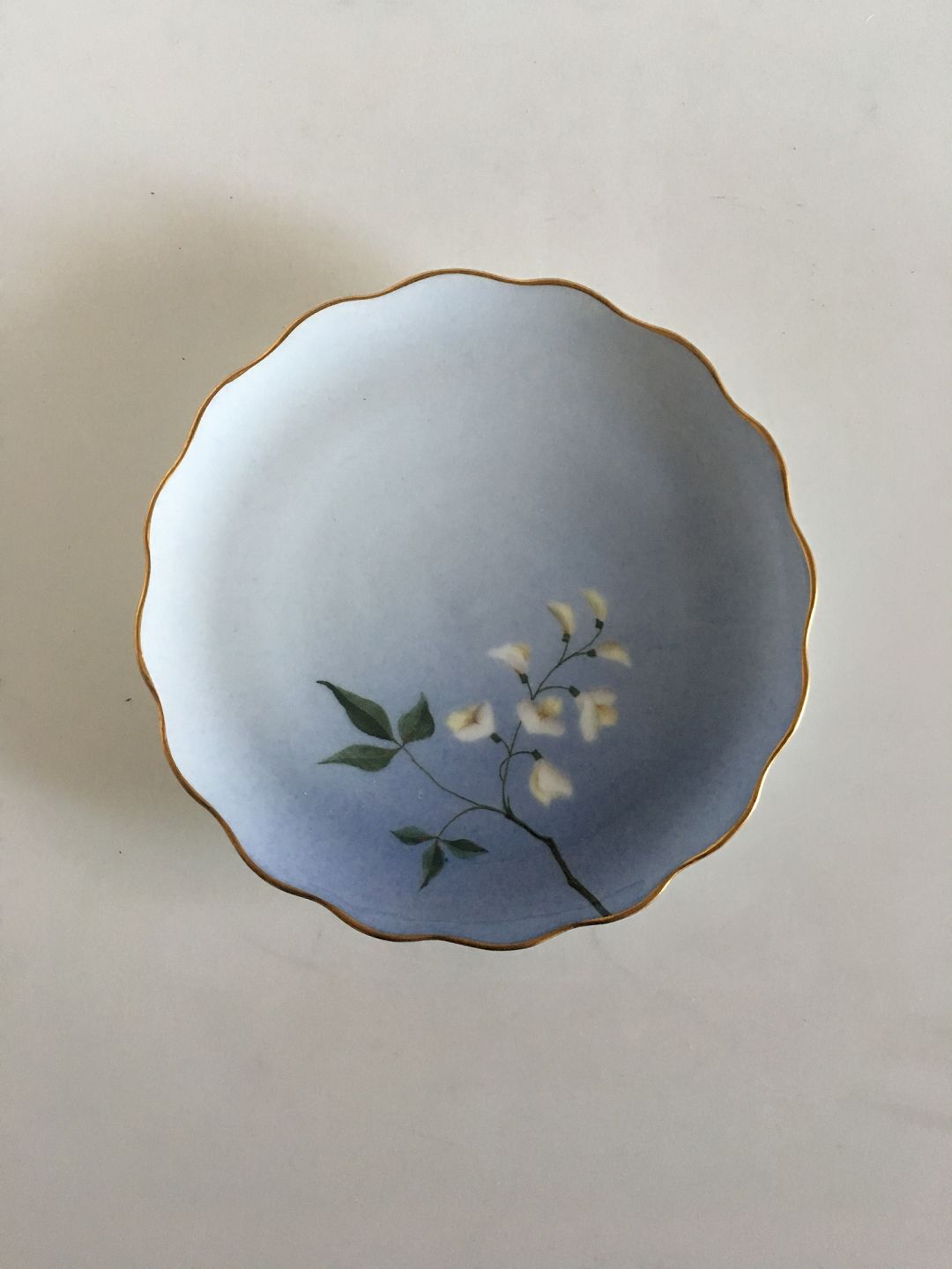 Bing & Grondahl Cake Plate with Flower Decoration and Goldrim. 17 cm diameter.