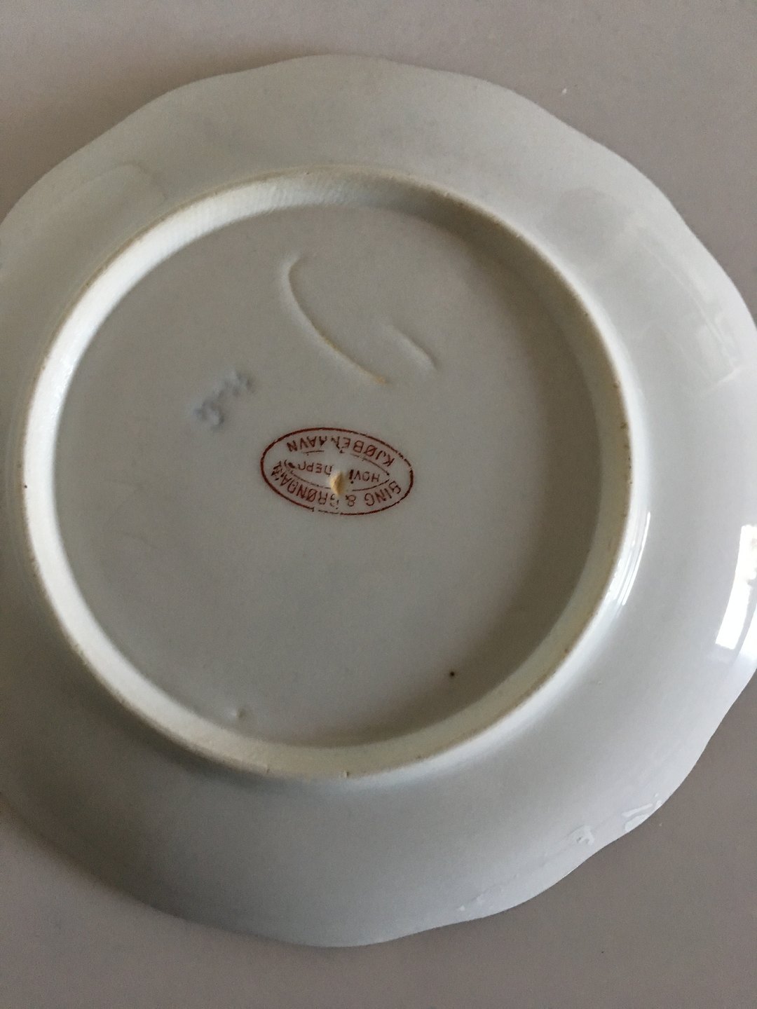 Bing & Grondahl Cake Plate with Flower Decoration and Goldrim. 17 cm diameter.