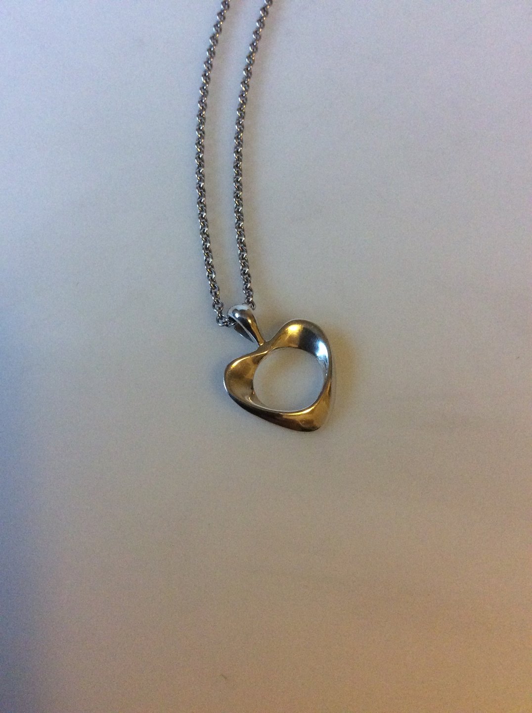 Georg Jensen Necklace Sterling Silver "Hearts of Georg Jensen". Messures: 1,5 mm Anchor Chain: 45 cm / 17 3/4", Pendant: 1,4 cm / 0 18/32" x 1,5 cm / 0 19/32". Weighs 4.1 g / 0.15 oz. The chain can be shortened by using the hoops.