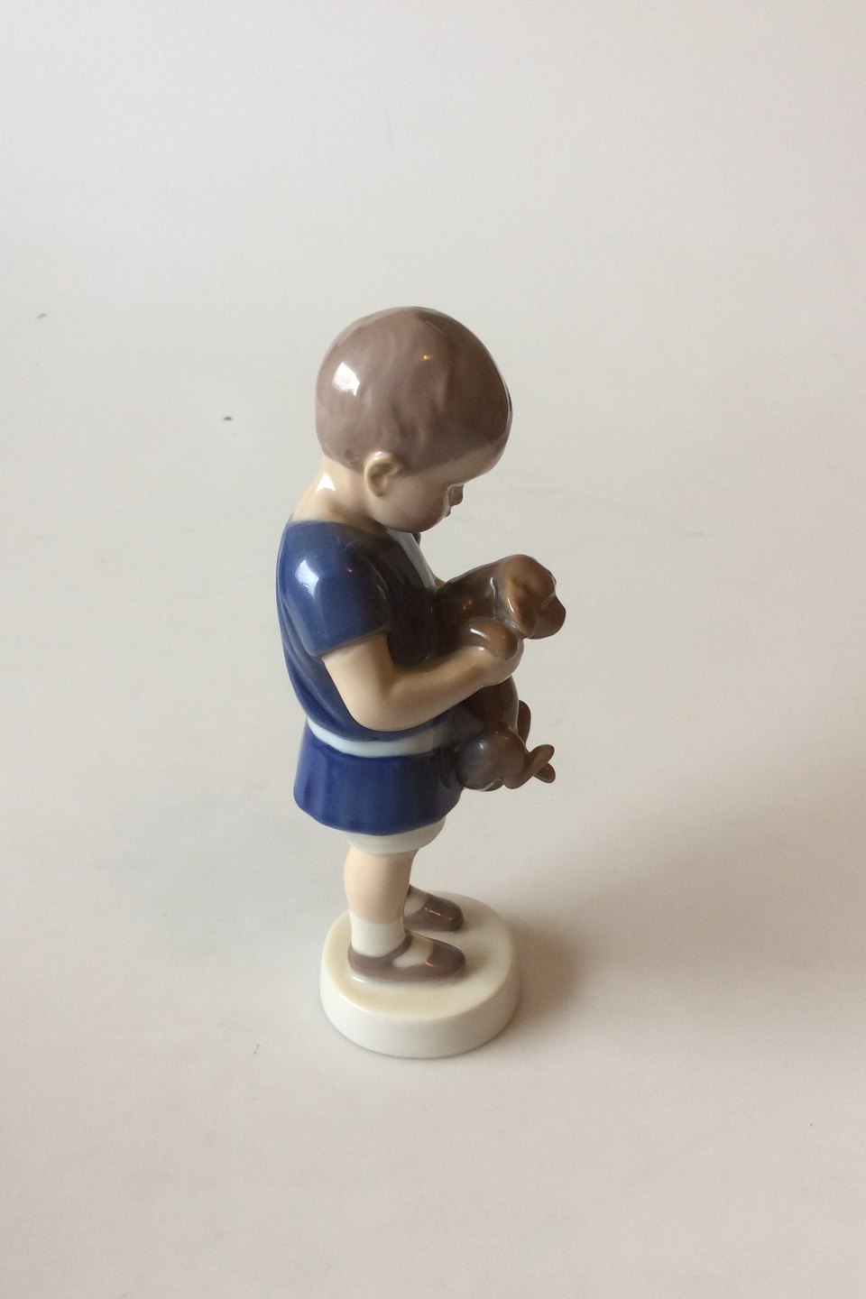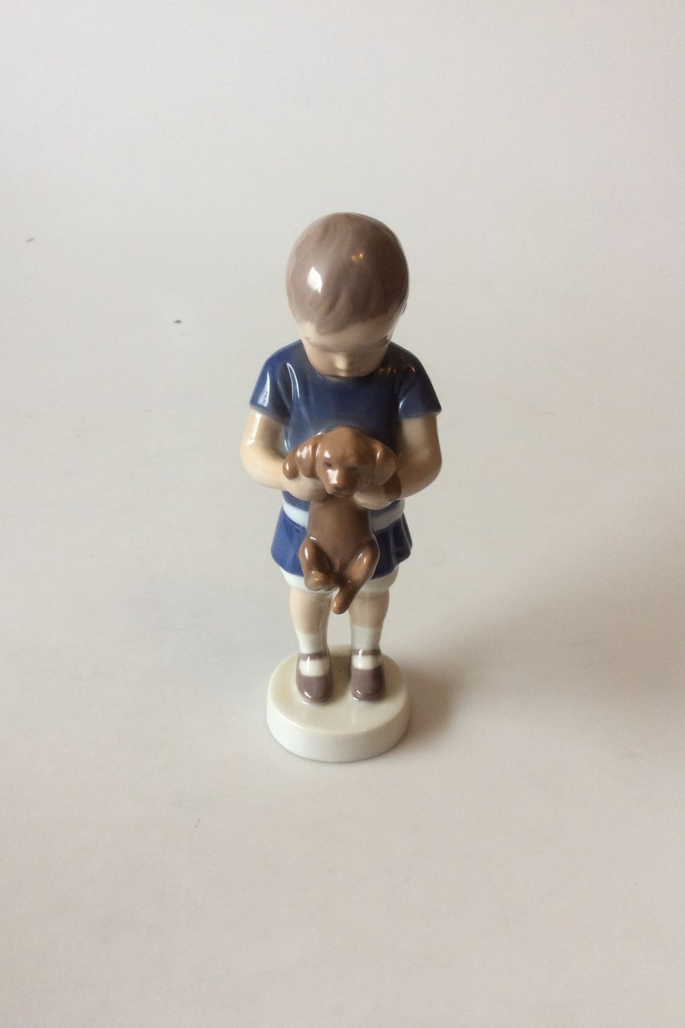 Bing and Grondahl Figurine - Boy with dog/Ole No. 1747. Designed by Ingeborg Plockross-Irminger. Measures 16.5 cm / 6.5 in.